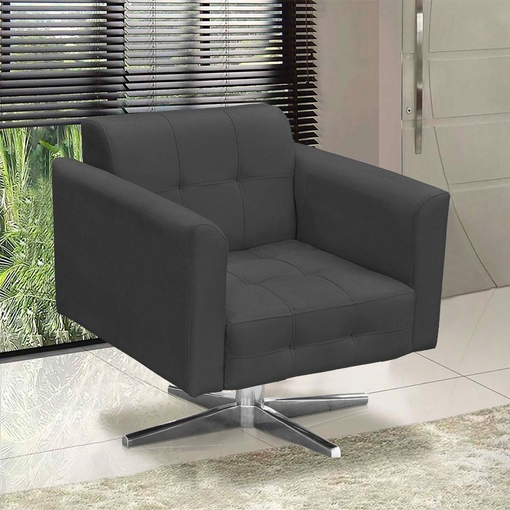 Poltrona Base Cromada Giratória Ana Suede Grafite - Ibiza