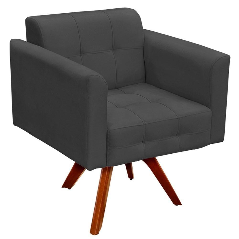 Poltrona Sala De Estar Base Madeira Giratória Ana Grafite