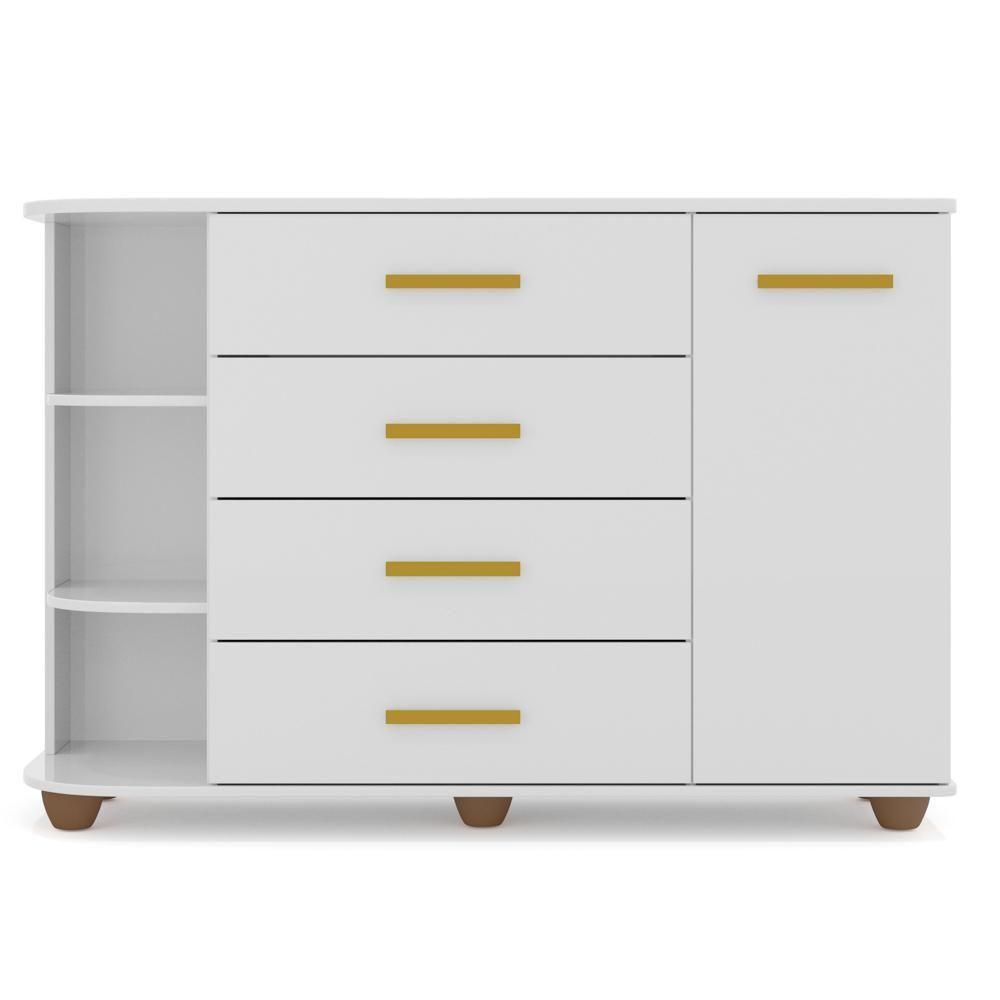 Cômoda Infantil Com Cantoneira E 4 Gavetas 100% Mdf New Lorena Branco - Phoenix