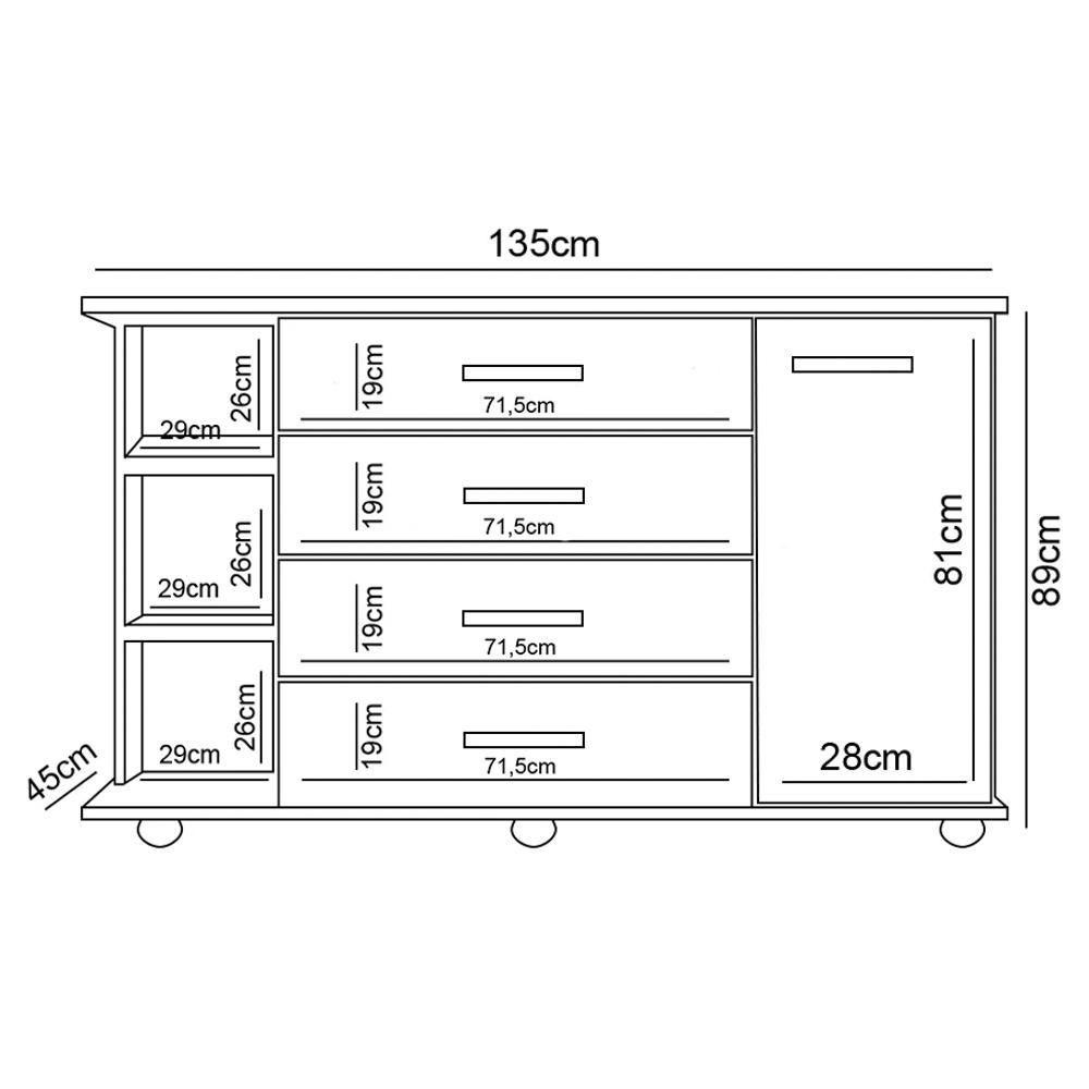 Cômoda Infantil Com Cantoneira E 4 Gavetas 100% Mdf New Lorena Branco - PhoenixA Cômoda Infantil com Cantoneira e 4 Gavetas 100% MDF New Lorena Branco, da Phoenix Baby é a escolha ideal para quem busca funcionalidade e estilo no Quarto Do Bebê.Com sua estrutura 100% MDF e acabamento em pintura atóxica UV de alto brilho, a Cômoda Infantil não só garante um visual encantador, mas também promete durabilidade e segurança. As gavetas com corrediças telescópicas oferecem um manuseio suave e silencioso, perfeito para não atrapalhar o sono do bebê, enquanto a cantoneira adiciona um toque de elegância e aproveitamento de espaço com nichos, de forma segura sem quinas já pensando no seu bebê. A Cômoda com Porta acompanha 1 cabideiro em alumínio e 1 prateleira interna, de uso opcional, é um bônus para organizar as roupinhas com facilidade. Se queria deixar o quarto mais moderno e funcional acabou de encontrar o móvel certo!Adicione em seu carrinho de comprar e garanta a sua!ESPECIFICAÇÕESDimensões do ProdutoLargura: 135 cm.Altura: 89 cm.Profundidade: 45 cm.Peso: 48 Kg.Outras MedidasPorta (Largura x Altura): 28 x 81 cm.Gavetas (Largura x Altura): 71,5 x 19 cm.Características do ProdutoMaterial da Estrutura: 100% MDF.Peso Suportado: 50 kg distribuídos.Acabamento: Pintura Atóxica UV.Escala de Brilho: Alto Brilho.Quantidade de Portas: 1 Porta.Tipo de Dobradiças: Metálicas.Possui Cabideiro: Sim, uso opcional.Material do Cabideiro: Alumínio.Quantidade de Gavetas: 4 Gavetas.Tipo de Corrediças: Telescópicas.Tipo de Puxador: PVC Dourado.Possui Prateleiras: Sim.Quantidade de Prateleiras: 3 Prateleiras.Possui Nichos: Sim.Quantidade de Nichos: 3 Nichos.Possui Pés: Sim.Tipo de Pés: PVC.Diferenciais:- Design moderno.- Amplo espaço interno.- Cantoneira com nichos.- Prateleira interna e cabideiro de uso opcional.Sistema de Montagem: Minifix / Cavilhas / Parafusos.Manual de Montagem: Sim.Complexidade da Montagem: Média.Volumes: 1 Volume.Garantia do Fabricante: 90 dias contra defeito de fabricação.Montagem: Recomendamos que seja feita por um profissional.Recomendação de Limpeza: Pano levemente úmido e detergente neutro.Observações importantes- Produto para uso residencial em ambiente interno, não devendo ficar exposto diretamente ao sol, calor e umidades excessivas.- Pode haver alguma diferença de tonalidade entre a imagem e o produto real, por conta do tratamento de imagens e a calibração de cores do seu monitor.- As imagens são meramente ilustrativas, não acompanham objetos de decoração e eletrônicos.- Ao receber a mercadoria, o cliente deve verificar as condições da embalagem, caso haja alguma avaria não assine o comprovante de recebimento.- Montagem, desmontagem e outras instalações serão de responsabilidade do cliente. Não nos responsabilizamos, no ato da entrega, por subir escadas/elevadores ou pelo transporte por guincho em apartamentos. Eventuais despesas são de responsabilidade do comprador.- Confira as dimensões do produto e certifique-se de que passará normalmente por supostos elevadores, portas, escadas e/ou corredores de sua residência. Altura: 89 cm | AssemblyRequired: Sim, sugerimos a contratação do nosso serviço de montagem (para os CEPs em que o serviço está dispon | Color: Branco | ColorFamily: Branco | ColorSimple: Branco | ColorSupplier: Branco | Cor: Branco | Gênero: Unissex | Largura: 45 cm | Manual: Sim | Material: MDF | MaterialFamily: MDF | Model: New Lorena | Origem: Nacional | OriginCountry: Nacional | OriginState: PR | Peso: 48 kg | ProductContents: 1 Cômoda | ProductHeight: 89 | ProductInstructions: Produto para uso em ambiente interno, nao devendo ficar exposto ao sol, calor e umidade excessivos. | ProductLength: 45 | ProductWarranty: 90 dias após o recebimento do produto | ProductWeight: 52 | ProductWidth: 45 | Profundidade: 45 cm | Requere montagem: Sim | SizeDescription: 89 x 45 x 45 cm | SupplierSimpleName: Cômoda Infantil com Cantoneira e 4 Gavetas 100% MDF New Lorena Branco - Phoenix