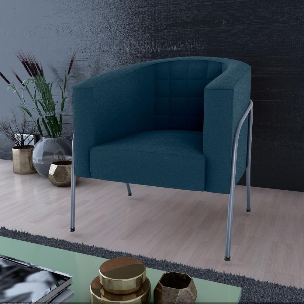 Poltrona Decorativa Base Em Metal Grafite Lisboa Preto Matrix Azul-grafite