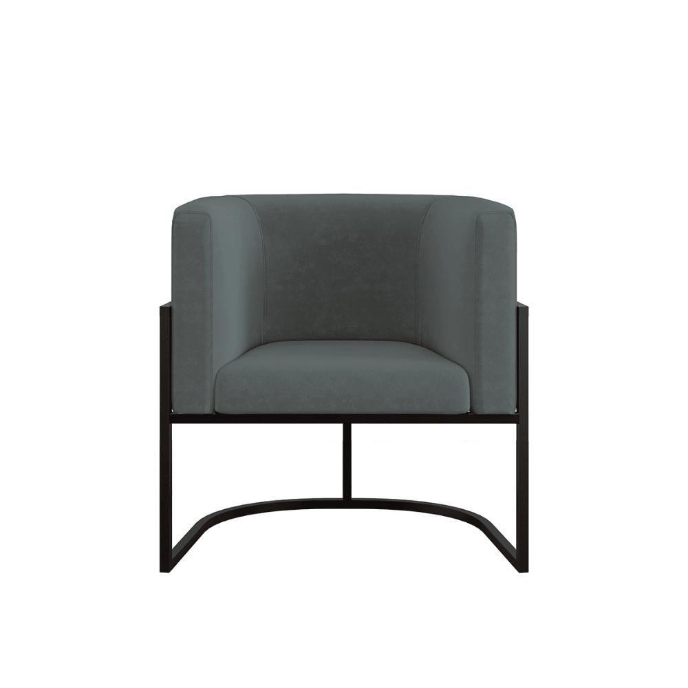 Poltrona Cadeira Decorativa Lua Base De Ferro Black Cinza
