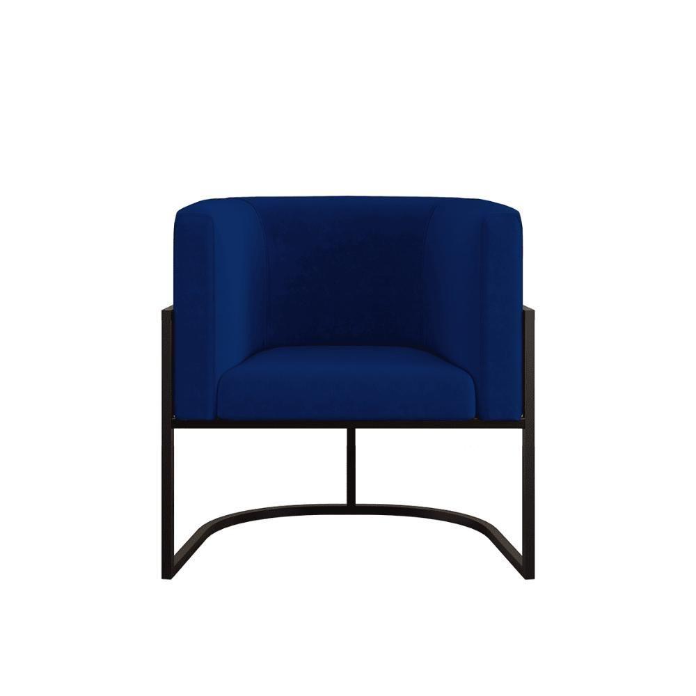 Poltrona Cadeira Decorativa Lua Base De Ferro Black Azul Marinho