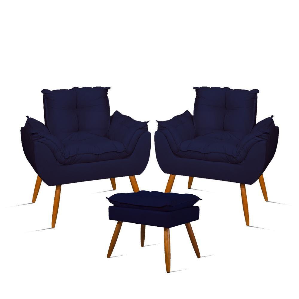 Kit Luxo 02 Poltronas Amamentação Suede + 1 Puff Pés Palito Cor:azul Marinho Azul Marinho