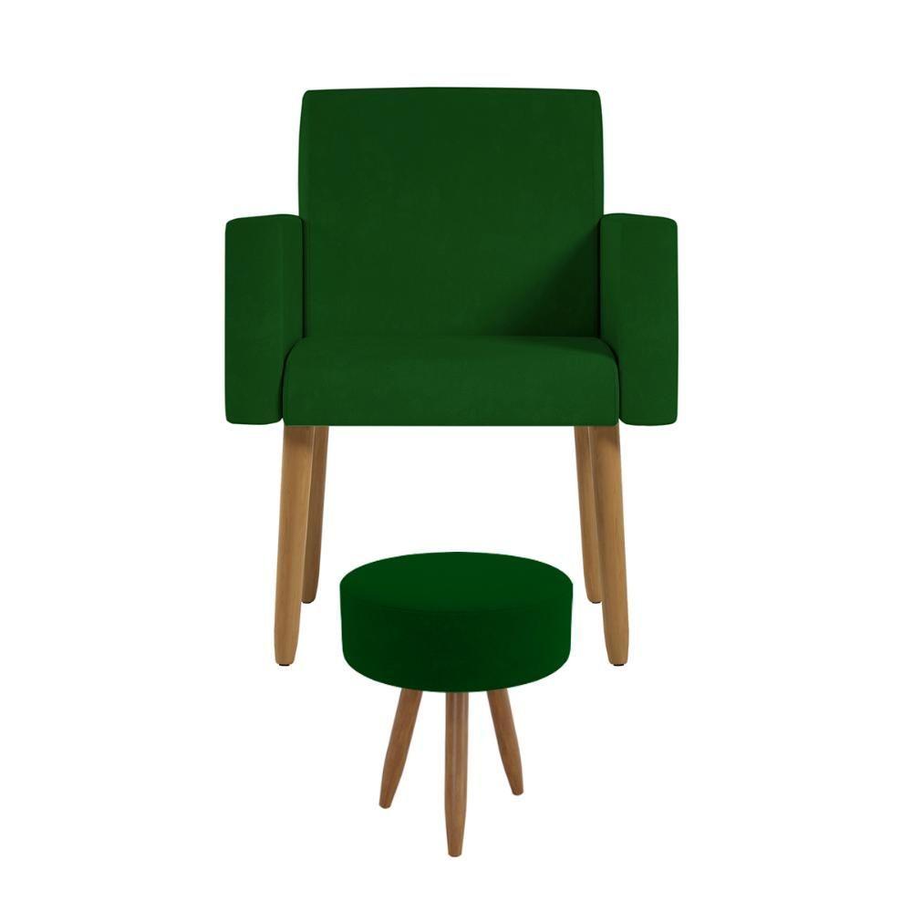 Poltrona Decorativa Cadeira Recepção Com Puff Balaqui Decor Verde