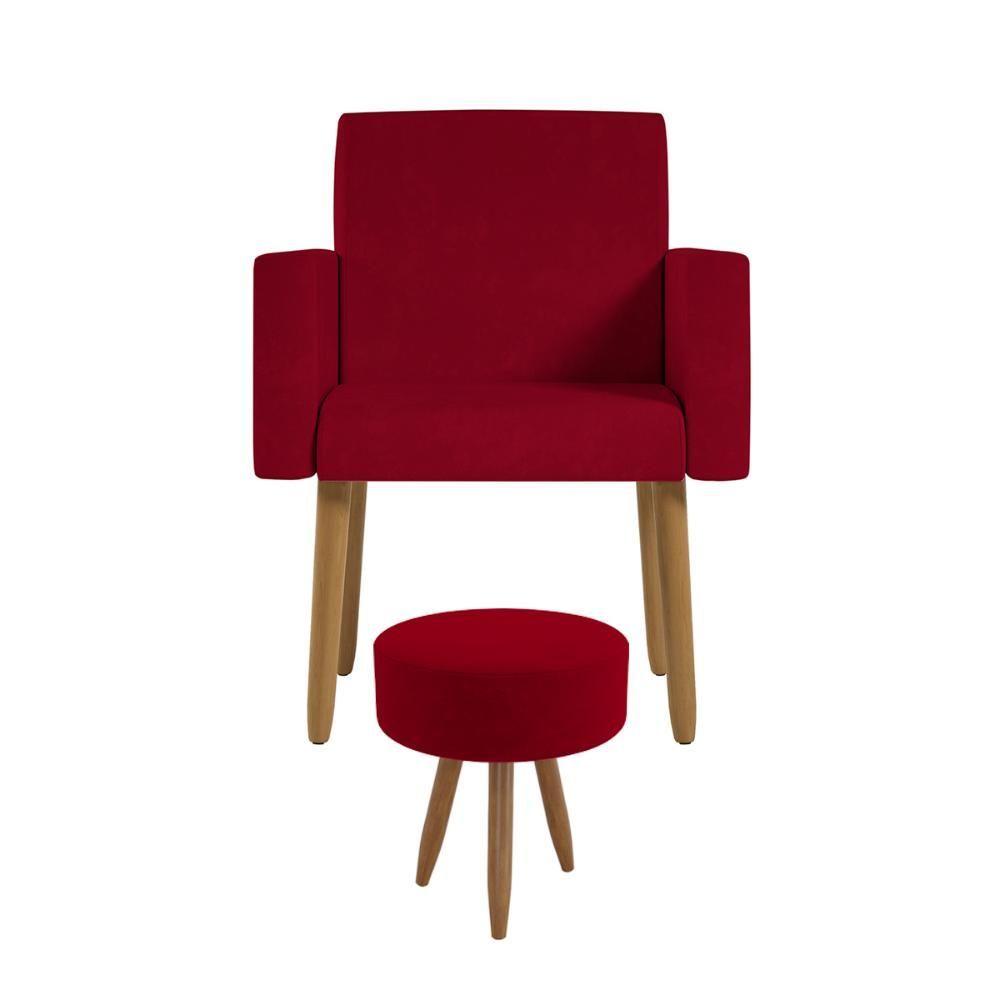 Poltrona Decorativa Cadeira Recepção Com Puff Balaqui Decor Vermelho