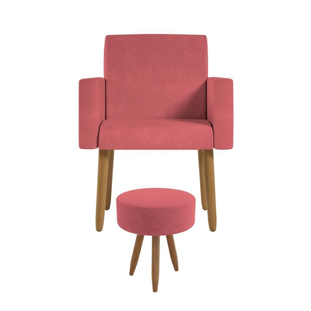 Poltrona Decorativa Cadeira Recepção Com Puff Balaqui Decor Rosa