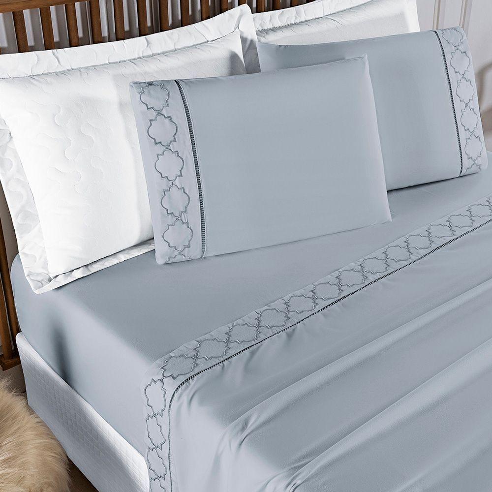 Jogo Cama Lençol Santoro Queen Micropercal 300 Fios 4 Peças - Cinza