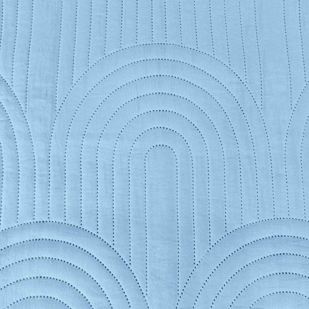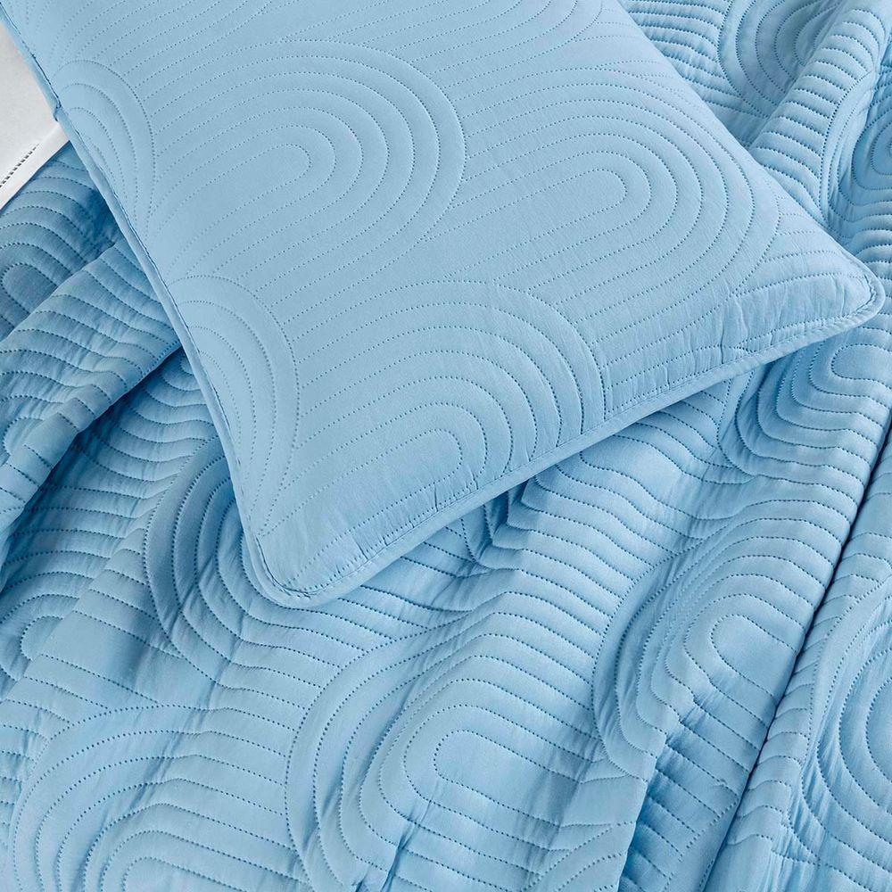 Kit Cobre Leito Colcha Arcos Queen Dupla Face Matelado 200 Fios 3 Peças Azul Claro