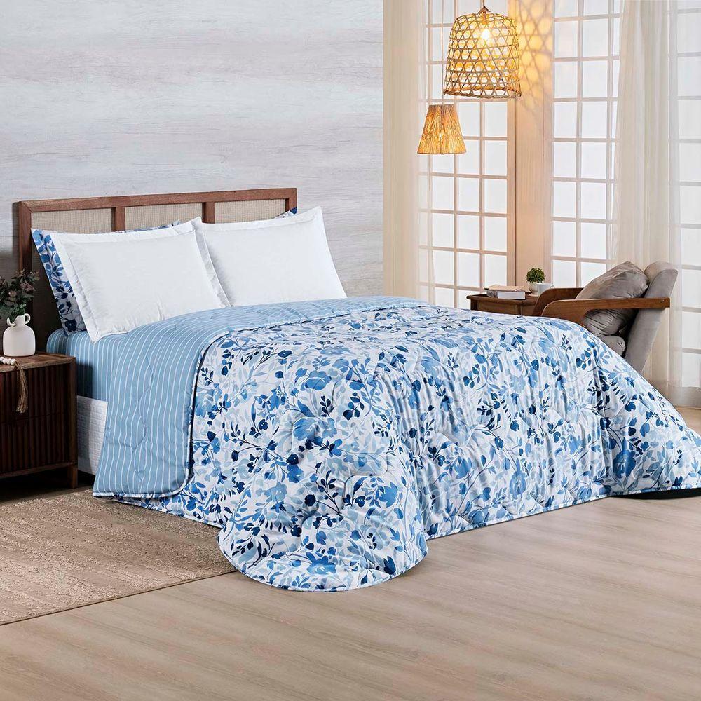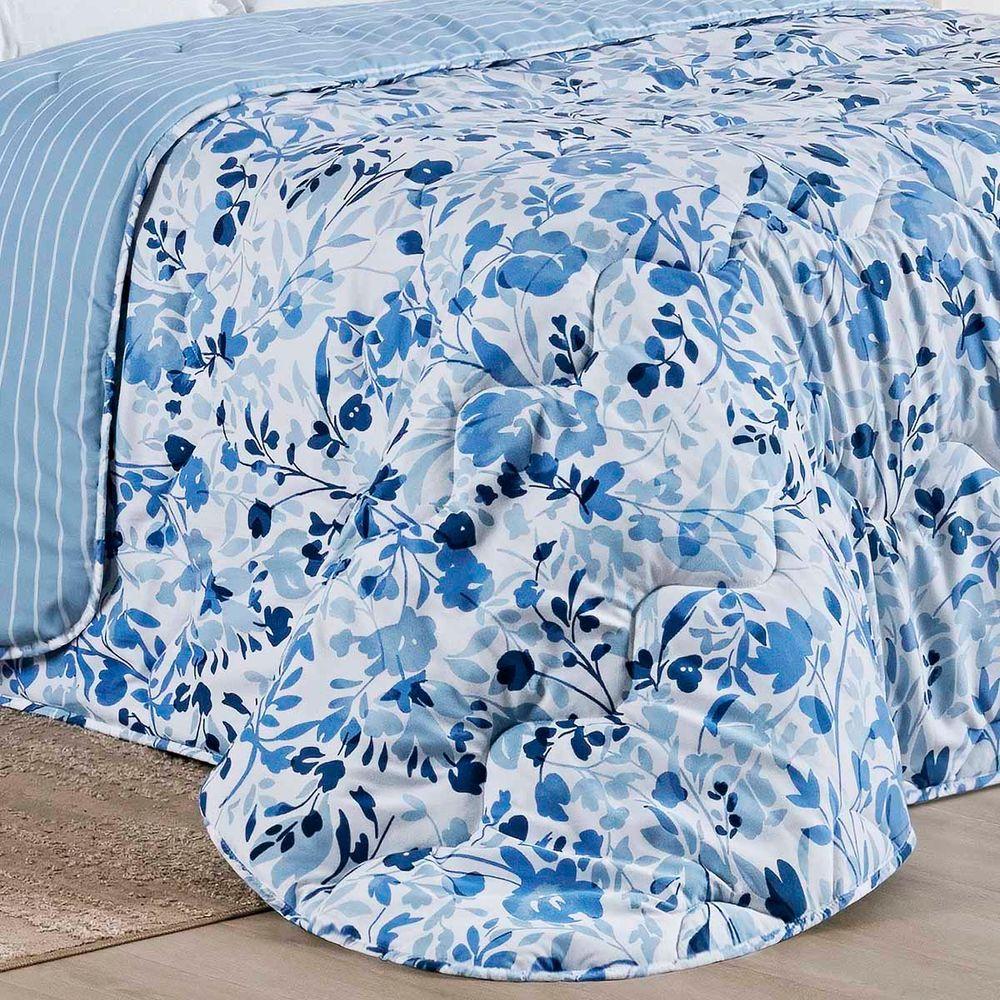 Edredom Cobertor Belle Queen 400 Fios Dupla Face Estampado Florido Azul