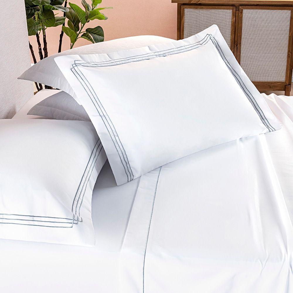 Jogo Cama Lençol Trivio Casal 400 Fios Bordado Fronhas Aba Americana 4 Peças Branco