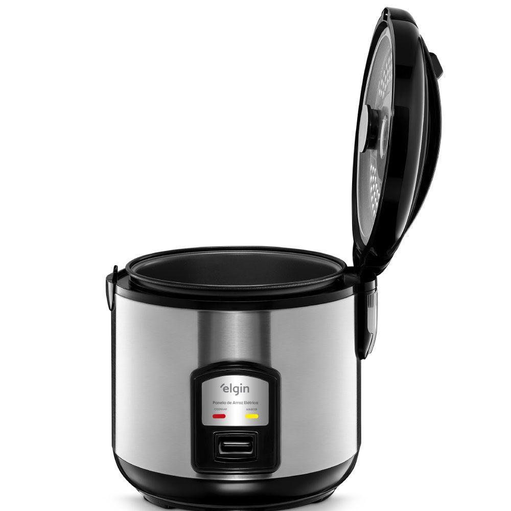 Elgin Panela De Arroz Gran Rizzo Preto/inox 110vEletrica Elgin GRAN RIZZOA Panela de Arroz Eletrica Elgin GRAN RIZZO e a escolha ideal para quem busca praticidade e eficiencia no preparo de deliciosas receitas. Com uma capacidade generosa de 10 xicaras, esta panela proporciona o tamanho perfeito para atender as necessidades da maioria das familias, garantindo refeicoes saborosas e nutritivas.Potencia e Facilidade de UsoCom uma potencia de 700W, a Panela de Arroz Eletrica Elgin GRAN RIZZO destaca-se pela eficiencia no cozimento, proporcionando resultados rapidos e consistentes. Sua operacao simplificada torna o processo culinario descomplicado: basta apertar um botao e aguardar a perfeicao culinaria.Funcao Manter Aquecido e Elegancia no ServirA funcao manter aquecido e um diferencial que agrega praticidade ao produto, permitindo que suas refeicoes fiquem prontas para servir a qualquer momento. Alem disso, a tampa basculante com sistema de trava nao apenas oferece praticidade, mas tambem adiciona um toque de elegancia ao design da panela.Facil Limpeza e DurabilidadeA Cuba antiaderente da Panela de Arroz Eletrica Elgin GRAN RIZZO facilita a limpeza pos-preparo, garantindo que a manutencao do aparelho seja rapida e eficiente. Sua durabilidade assegura um investimento de longo prazo, proporcionando experiencias culinarias excepcionais por muitos anos.Kit Completo e VersatilCarateristicas do produto:Potencia: 700WVoltagem: 110VCapacidade: 10 XICARAS OU 1,8 LConsumo (KW/ H): 0,7 KW/hConteudo da embalagem01 Panela de Arroz01 Cuba com revestimento antiaderenteManual de Instrucoes para orientacoes precisas01 Colher para servir, pensada para facilitar o manuseio01 Copo medidor para garantir as medidas exatas01 Bandeja de preparo no vapor, ampliando as possibilidades culinarias.Com a Panela de Arroz Eletrica Elgin GRAN RIZZO, a praticidade, elegancia e eficiencia se unem para transformar o momento de cozinhar em uma experiencia agradavel e satisfatoria. Adquira a sua hoje e eleve sua rotina culinaria a um novo patamar!Dimensoes do produto:Altura: 27 cmLargura: 27,5 cmProfundidade: 28 cmGarantia: 12 meses