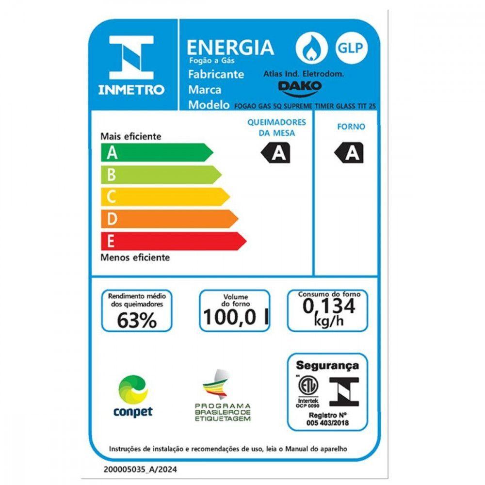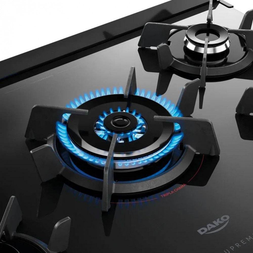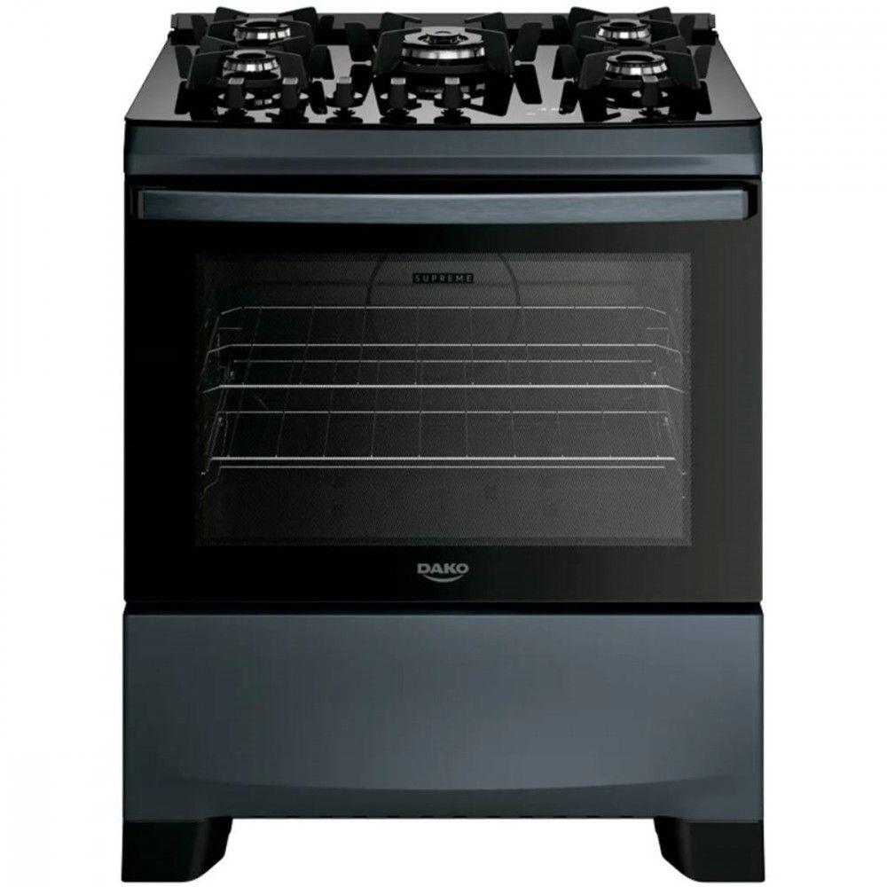 Fogão Dako 5 Bocas Supreme TC Timer Glass Titanium - Bivolt