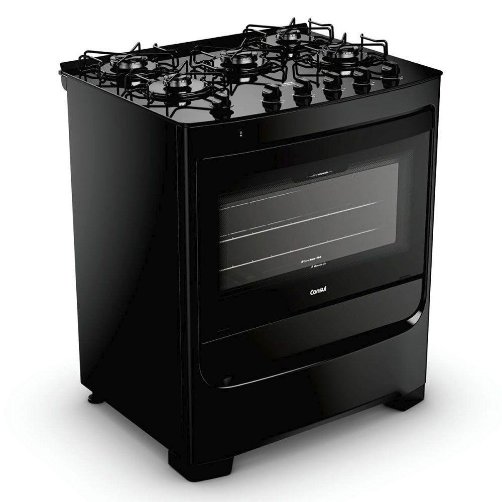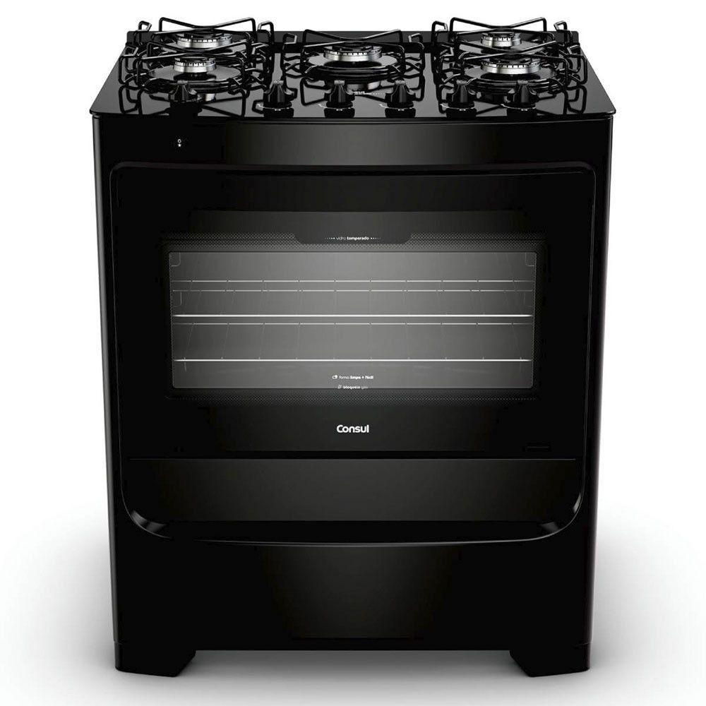 Fogão 5 Bocas Bivolt Com Mesa De Vidro Consul Preto Bivolt