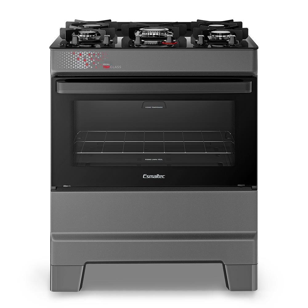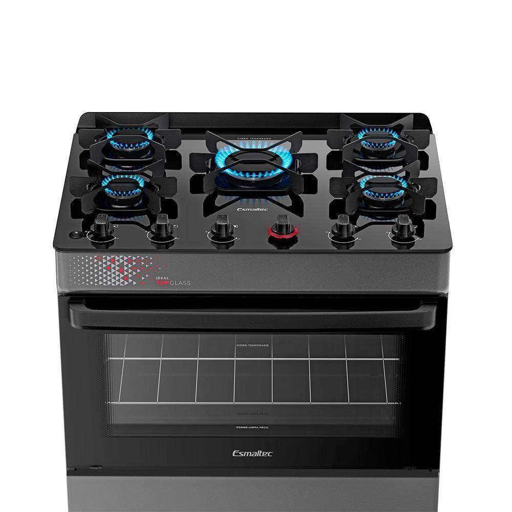 Fogão A Gás Mesa De Vidro Forno 84L Esmaltec Ideal Top Glass Titanium 5 Bocas Bivolt