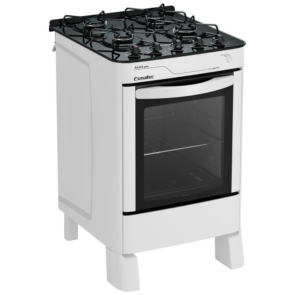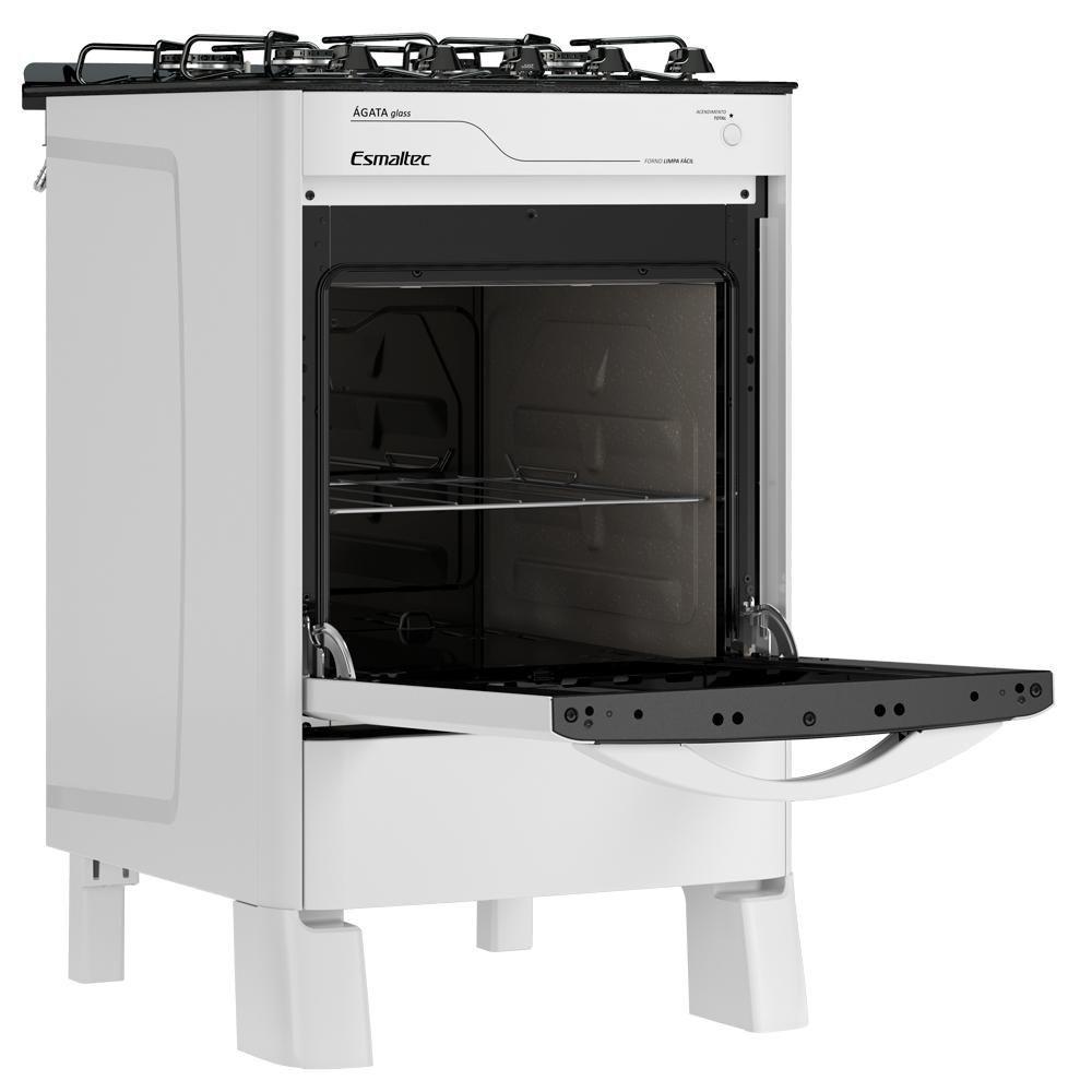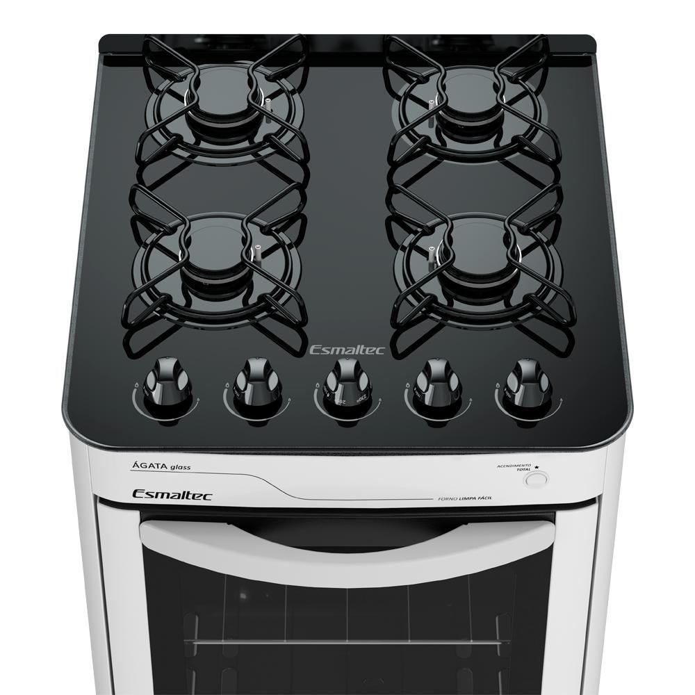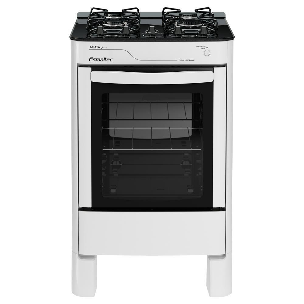 Fogão Esmaltec Ágata Glass 4 Bocas Branco Forno Limpa Fácil E Acendimento Automático Bivolt