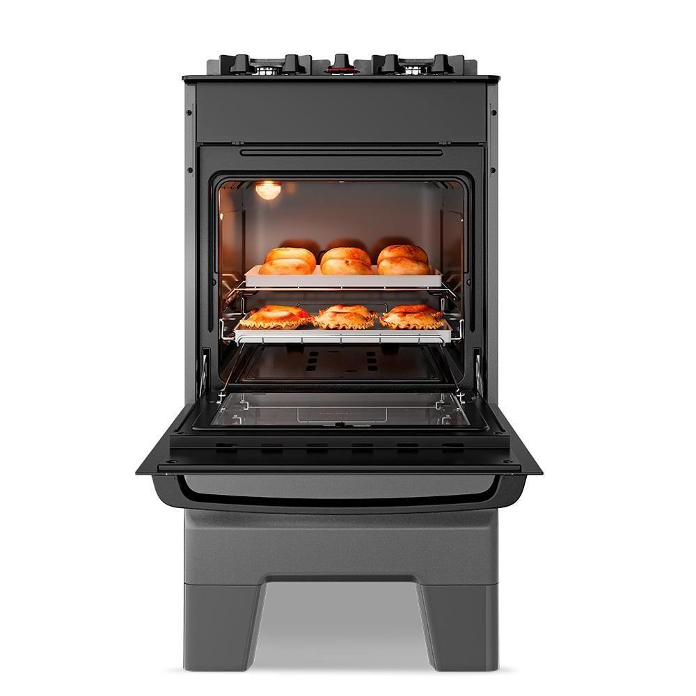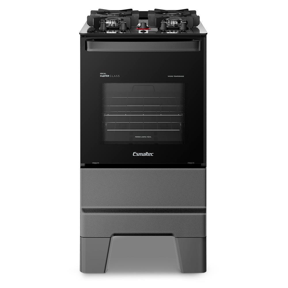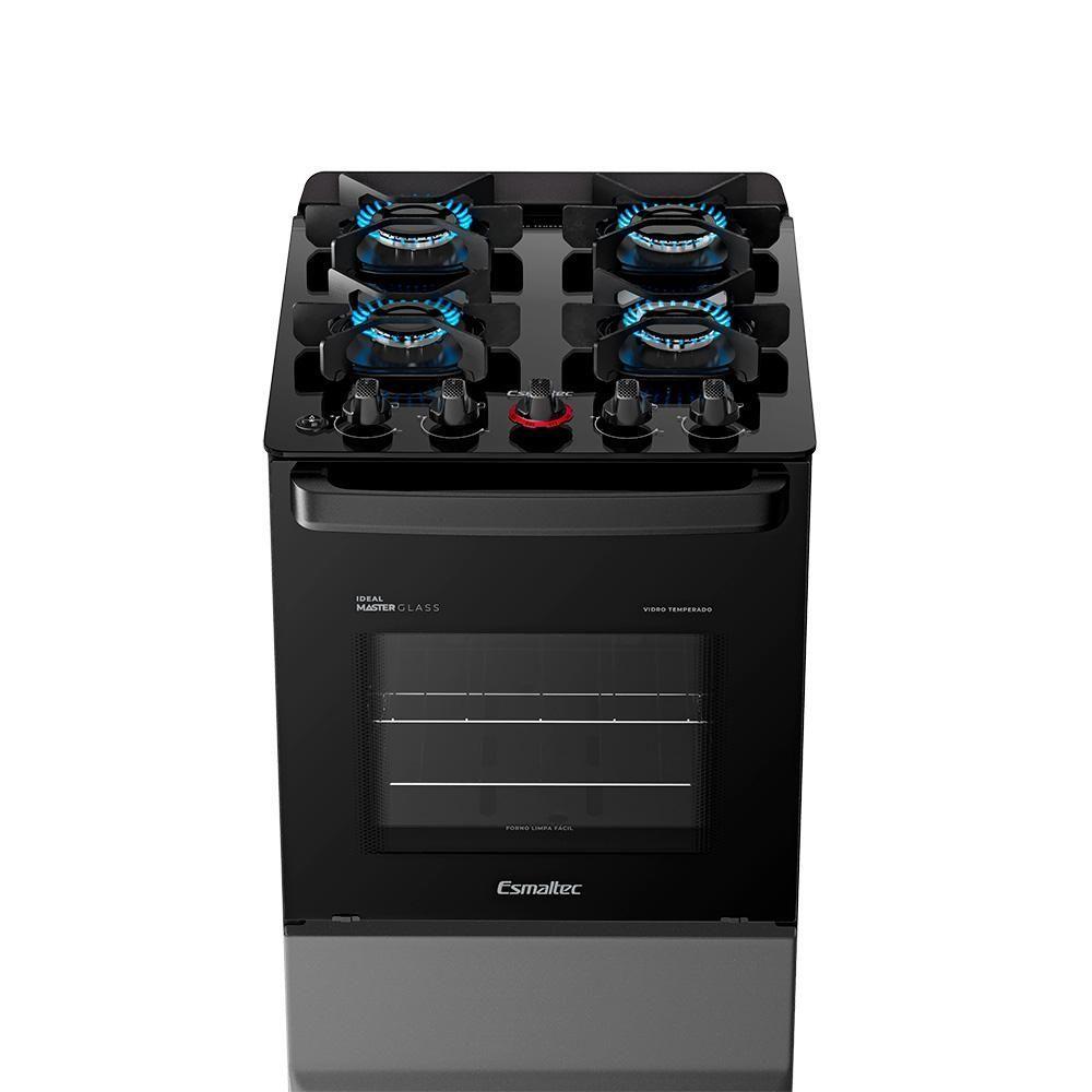 Fogão A Gás Mesa De Vidro Forno 50l Esmaltec Ideal Master Glass Titanium 4 Bocas Bivolt
