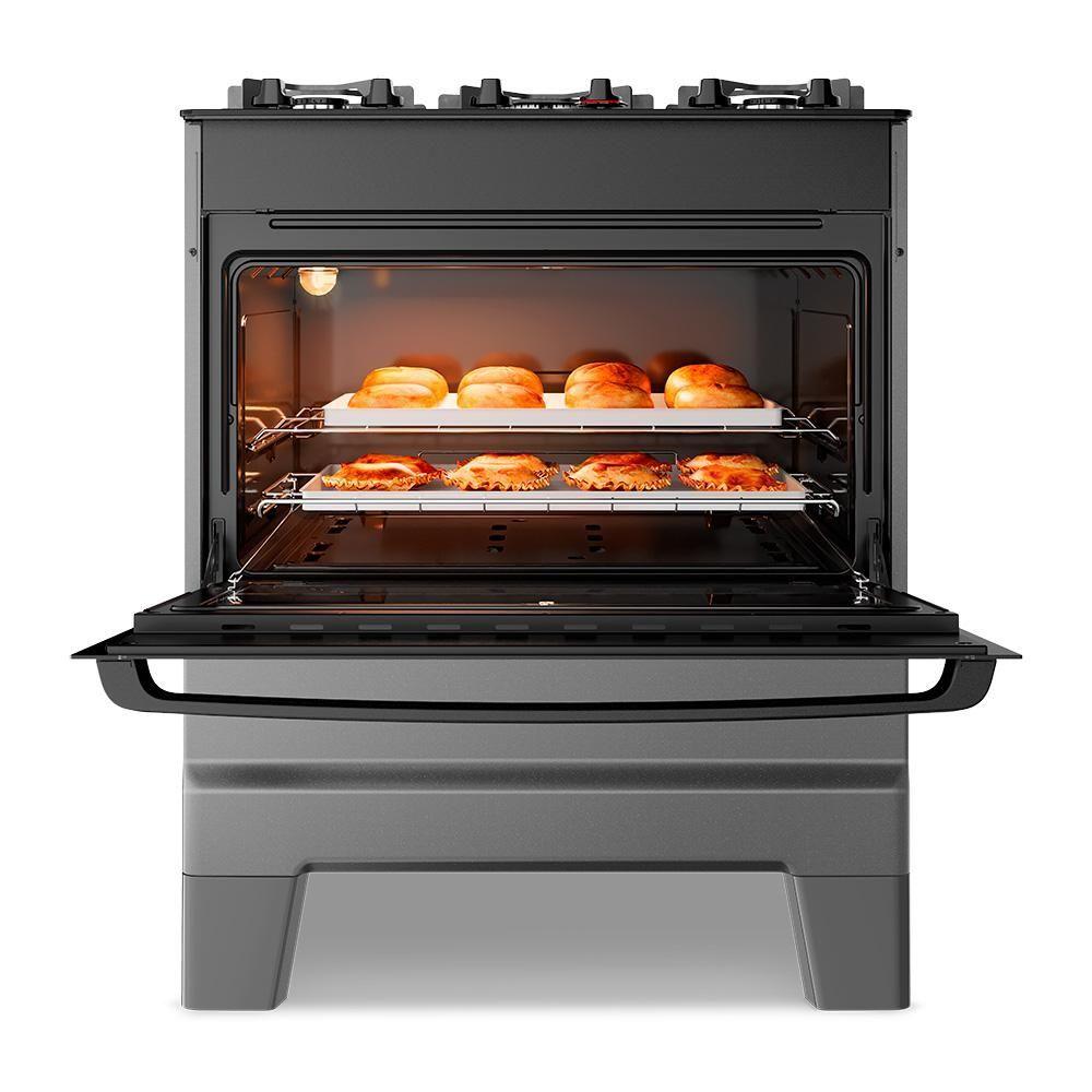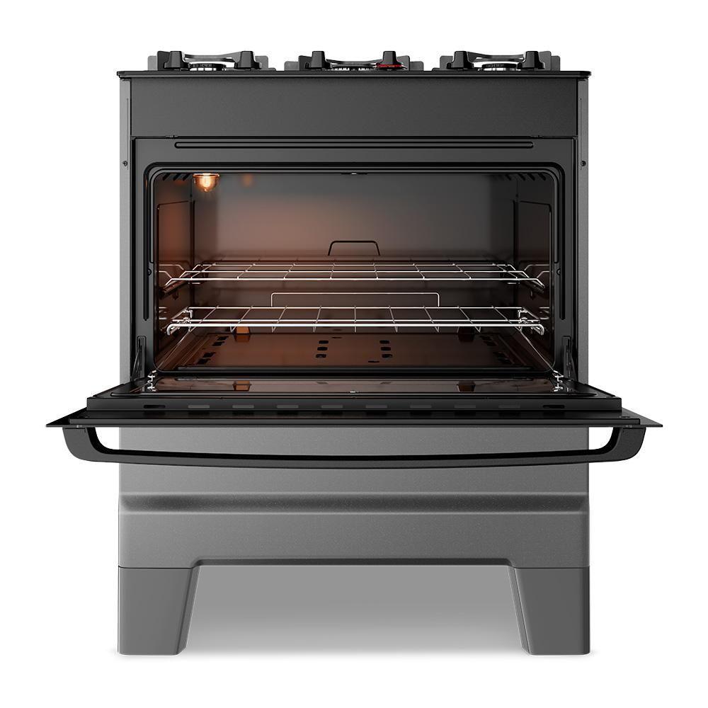 Fogão A Gás Mesa De Vidro Forno 84l Esmaltec Ideal Master Glass Titanium 5 Bocas BivoltMesa de vidro temperado: sofisticação, resistência e fácil limpeza.Acendimento automático: praticidade e agilidade no dia a dia.Trempes individuais com 6 apoios: mais estabilidade para suas panelas.Queimadores bem distribuídos: 1 tripla chama, 2 família e 2 pequenos. Forno Limpa Fácil com 84 litros: espaço ideal para receitas maiores.Porta do forno Full Glass com vidro interno removível: modernidade e facilidade na limpeza. 1 grade deslizante + 1 grade autodeslizante: praticidade e segurança no manuseio. Timer mecânico: controle de tempo direto no painel.Pés altos e retos com encaixe fácil: estabilidade e limpeza. facilitada.O Fogão 5 Bocas Esmaltec Ideal Master Glass a Gás com Mesa de Vidro Cor Titanium entrega o que há de melhor em sofisticação, robustez e eficiência para o ambiente da sua cozinha.Sua mesa de vidro temperado combina alta resistência com acabamento premium, elevando o padrão estético e facilitando a limpeza diária.As trempes individuais com 6 apoios oferecem mais segurança para panelas de diversos tamanhos.O acendimento automático proporciona agilidade no uso, enquanto os 5 queimadores (1 tripla chama, 2 família e 2 pequenos) oferecem potência e flexibilidade para diferentes tipos de preparo.O forno Limpa Fácil com 84 litros de capacidade acomoda grandes receitas com facilidade e vem equipado com porta Full Glass, vidro interno removível, grade deslizante e grade autodeslizante, entregando praticidade no manuseio dos assados.O timer mecânico direto no painel permite melhor controle do tempo de preparo. Para completar, o fogão traz pés altos e retos com encaixe fácil, oferecendo estabilidade e praticidade na limpeza.O Esmaltec Ideal Master Glass 5 bocas Cor Titanium é ideal para quem exige desempenho superior, visual sofisticado e praticidade no dia a dia.Isso é valor. Isso é Esmaltec. Quantidade de queimadores: 5 | Alimentação: A gás | Acendimento automático: Sim | Voltagem: Bivolt | Cor: TITANIUM | Forno com acabamento limpa fácil: Sim | Produto: Fogão | Tipo: De piso | Acompanha lâmpada: Sim