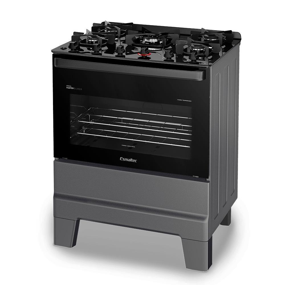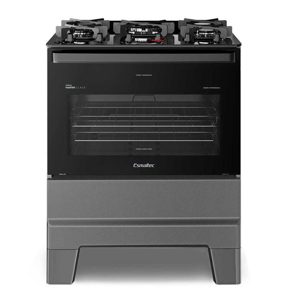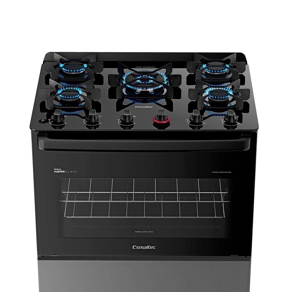 Fogão A Gás Mesa De Vidro Forno 84l Esmaltec Ideal Master Glass Titanium 5 Bocas Bivolt