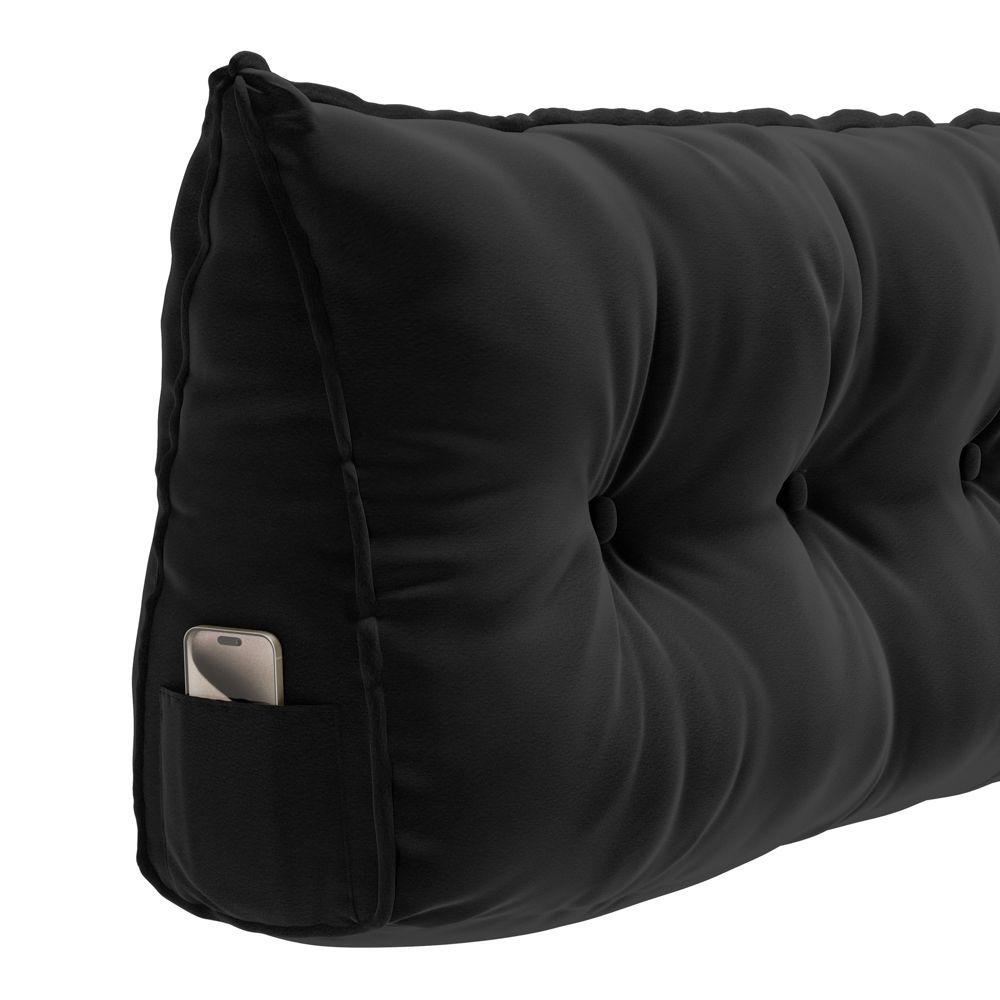 Almofada Para Cabeceira Encosto Apoio Lombar Spot 160cm Com Porta Celular Veludo - Abmaza Cor Preto