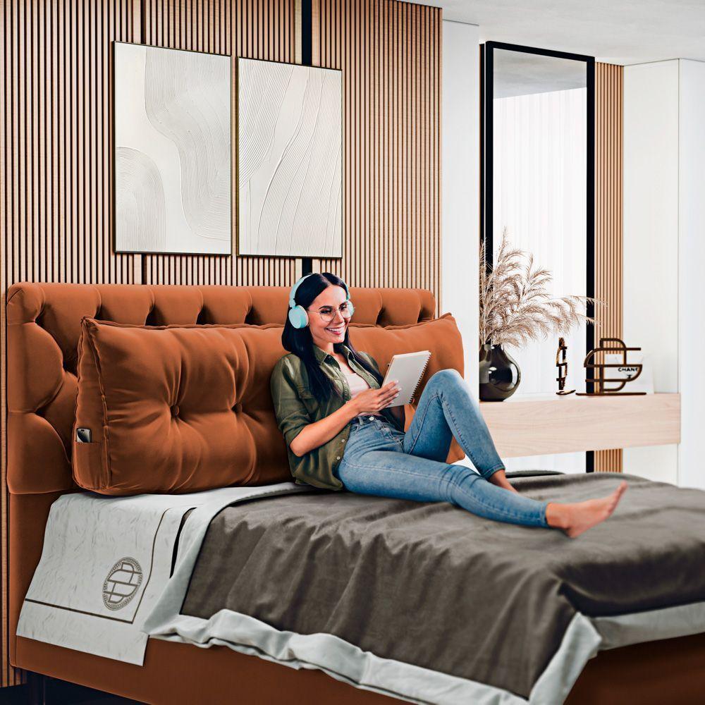 Almofada Para Cabeceira Encosto Apoio Lombar Spot 160cm Com Porta Celular Veludo - Abmaza Cor Terracota