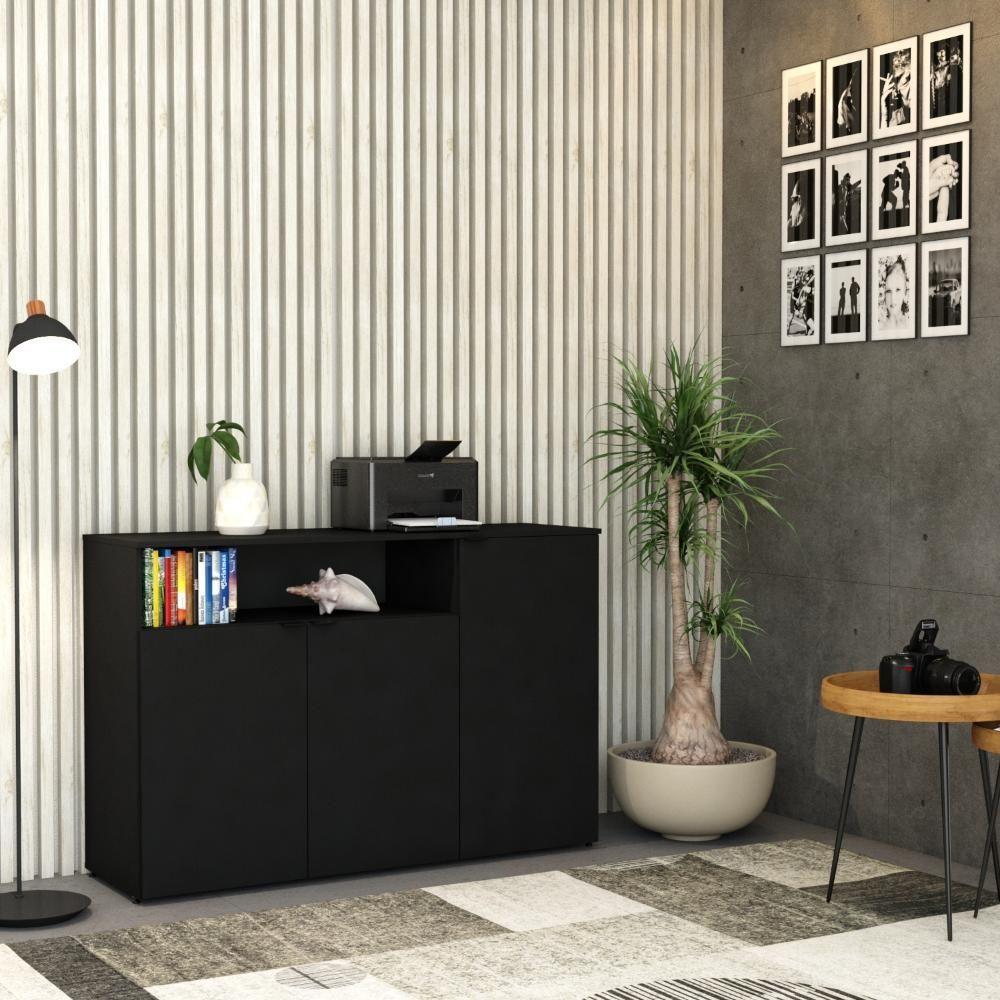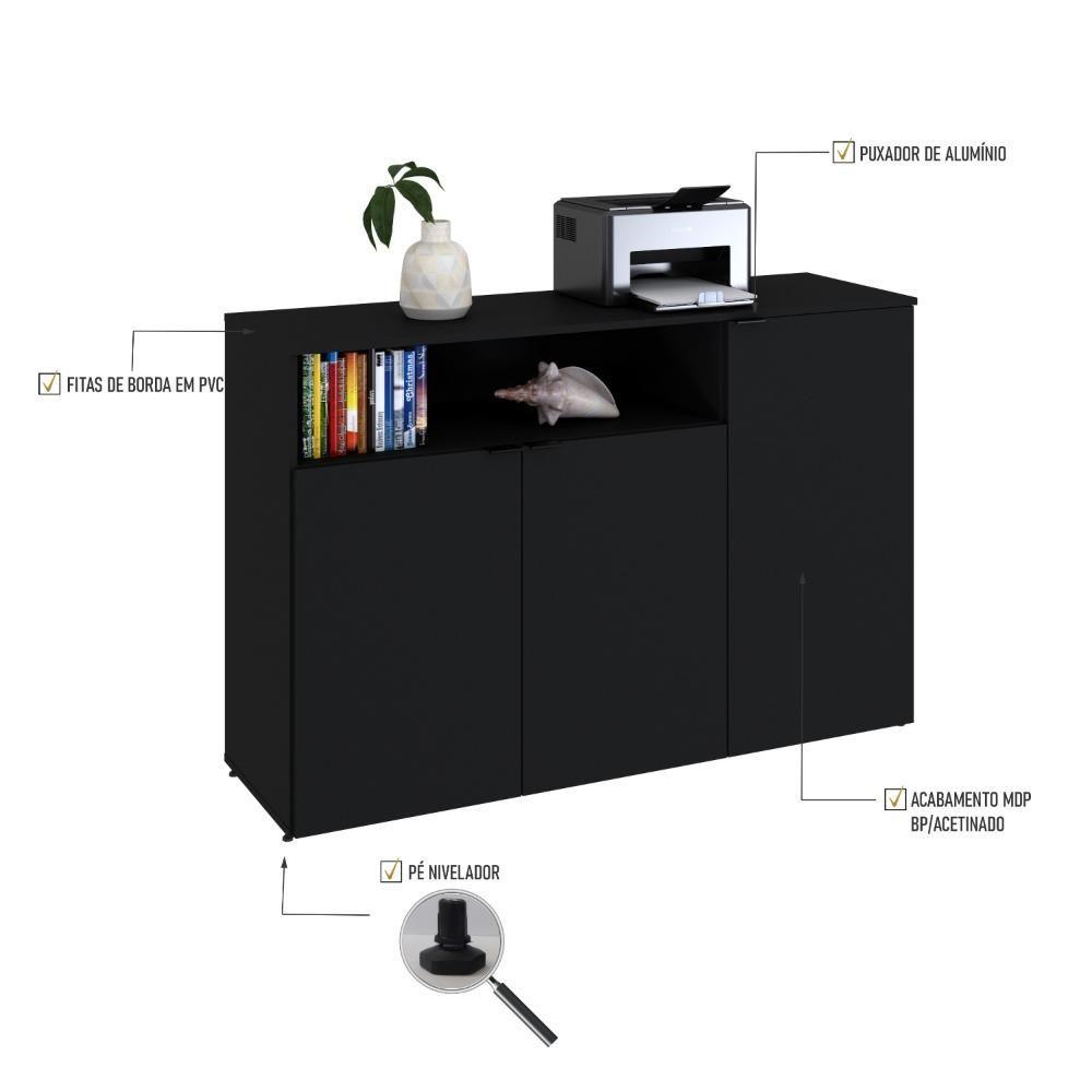 Armário Aparador Com 03 Portas E Nicho 89,5x135x42cm Wlap135 Preto Tx
