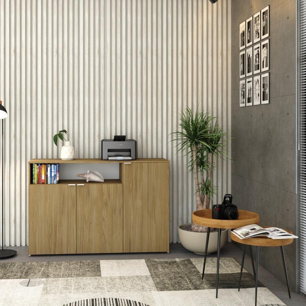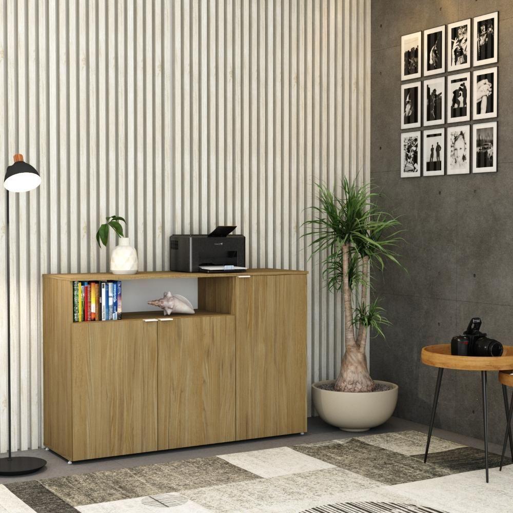 Armário Aparador Com 03 Portas E Nicho 89,5x135x42cm Wlap135 Vermont Oak - Branco