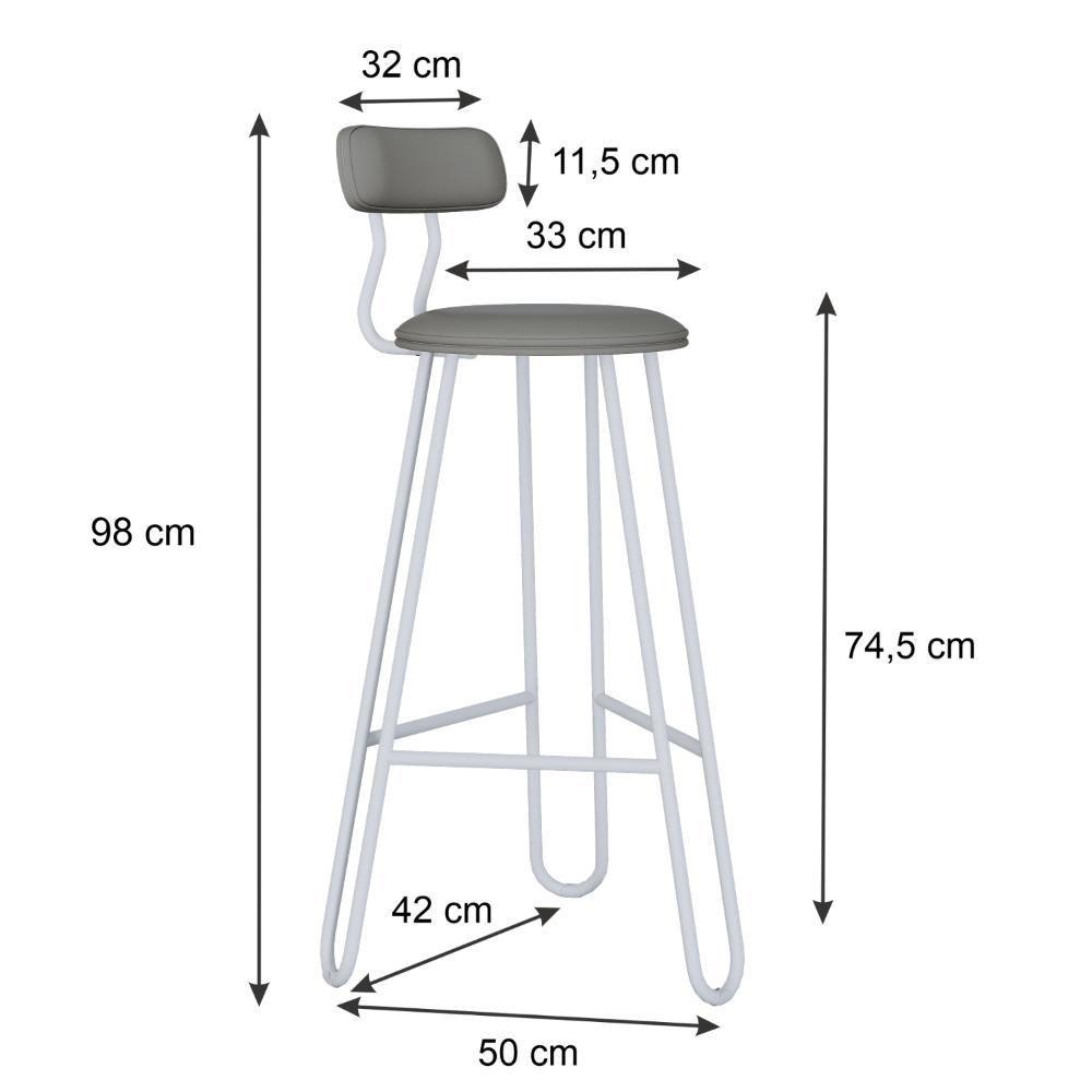 Conjunto 2 Banquetas Alta Ginger Com Encosto Courino Venus Cinza