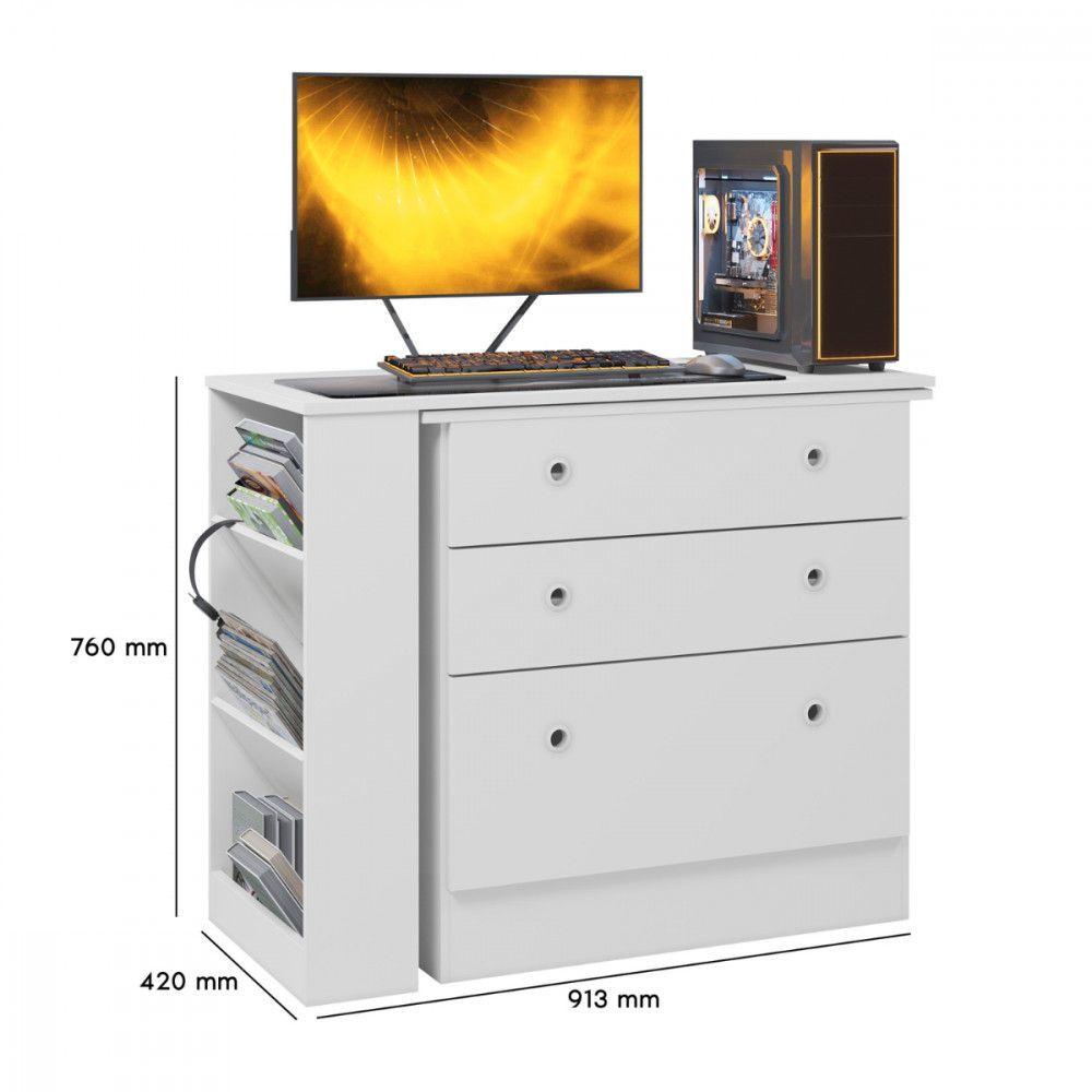 Cômoda Com Mesa Gamer Giratória Branco Qmovi Branco