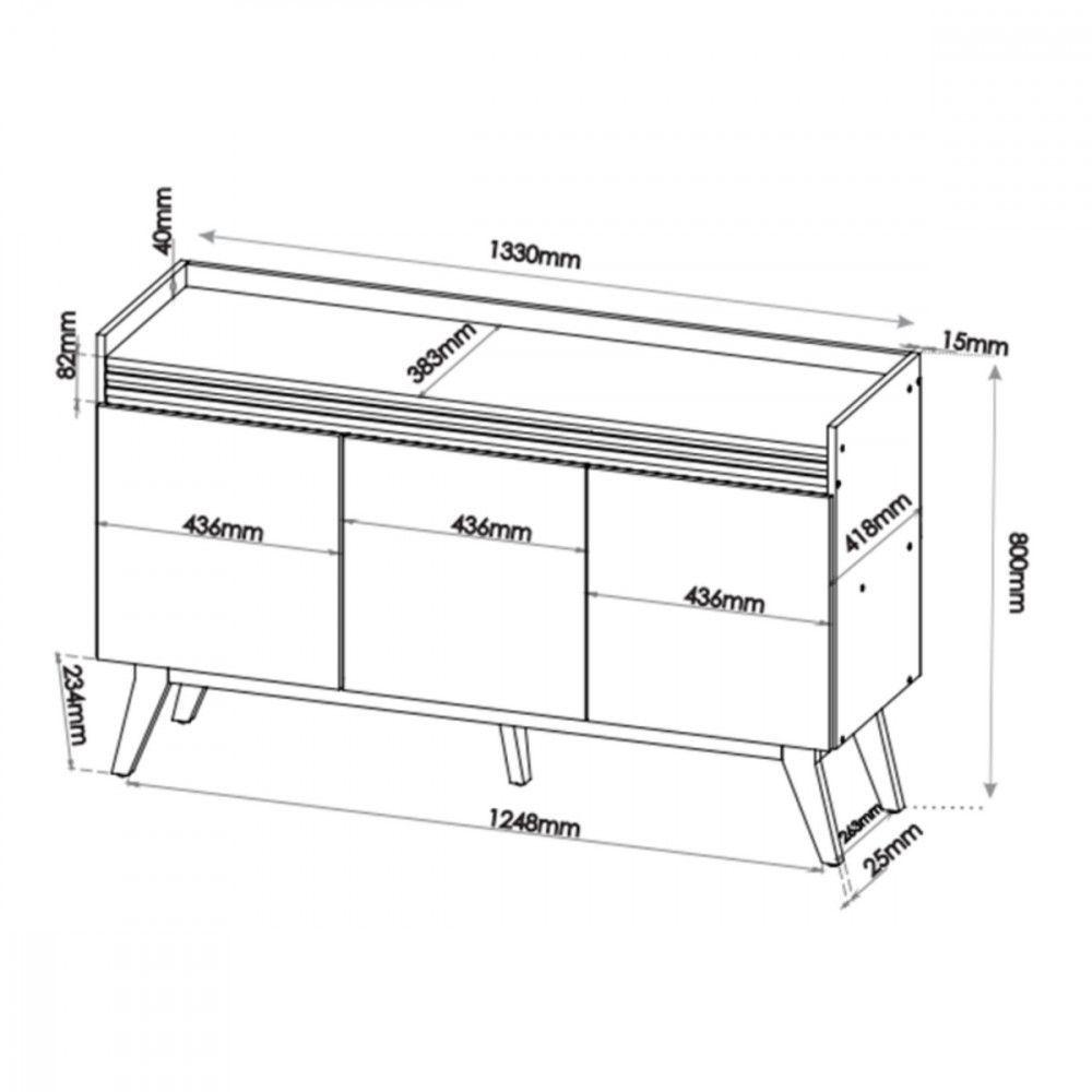 Aparador Buffet 3 Portas Atlanta Com Espelho Mel Viero Mel