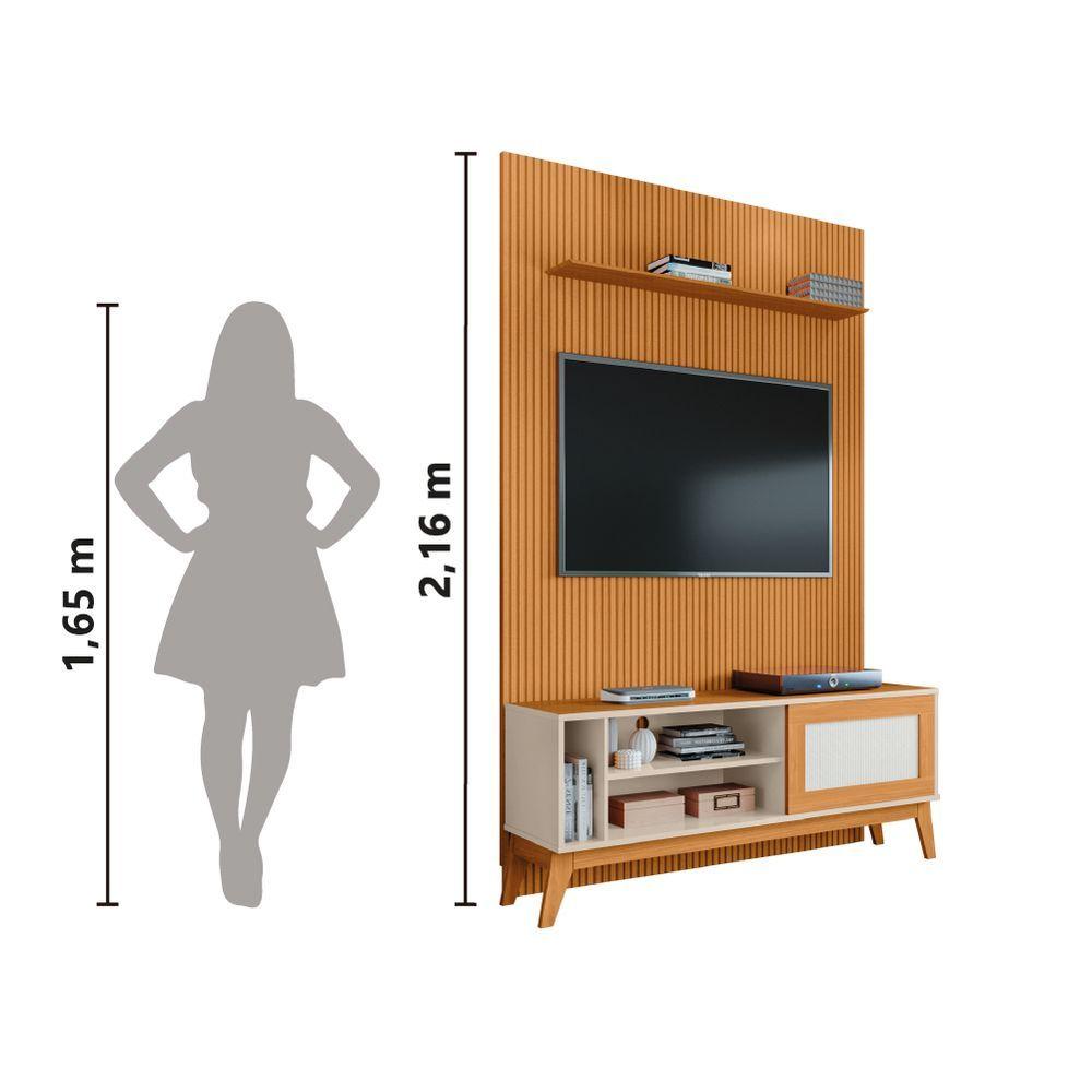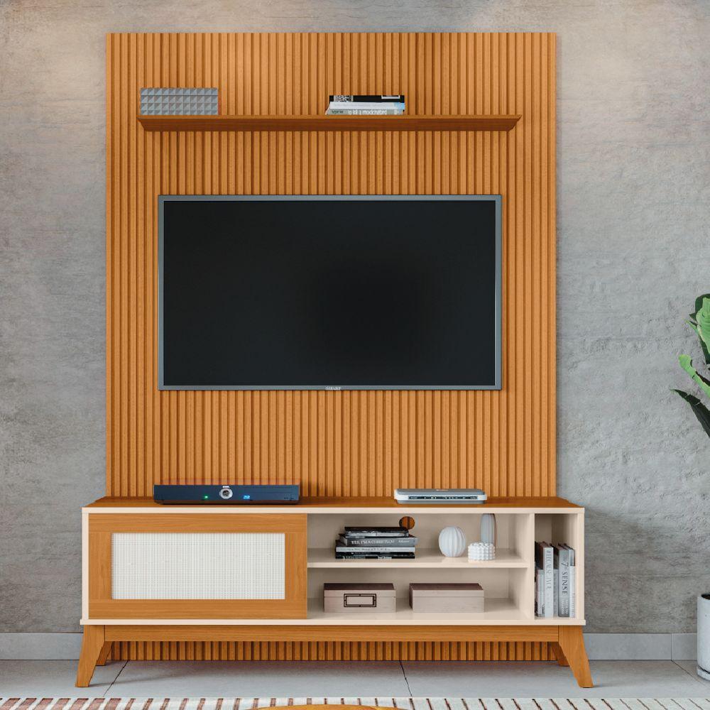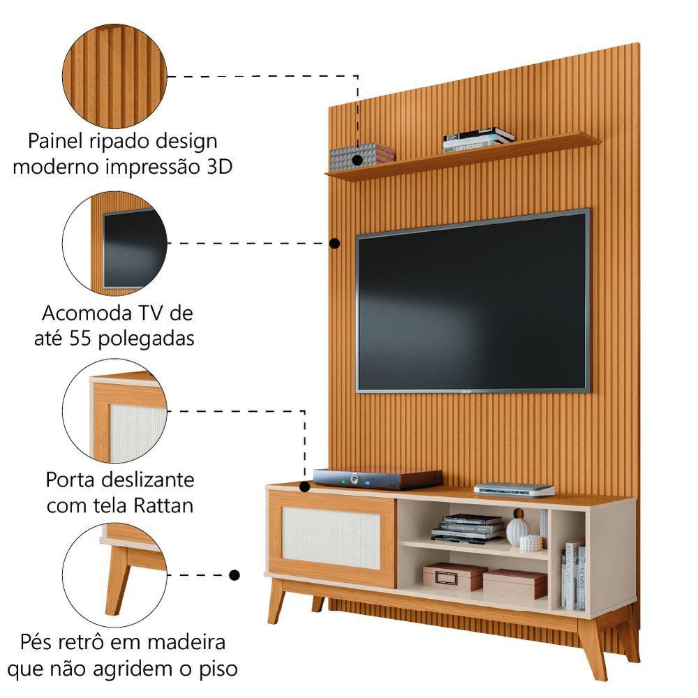 Rack Bancada Caribe Com Painel Para Tv Até 55 Polegadas Egeo Cedro/off White Ripado Impressão 3d Edn Cedro