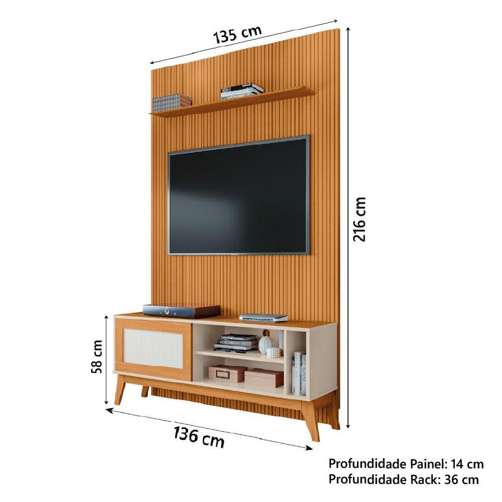 Rack Bancada Caribe Com Painel Para Até 55 Polegadas Egeo Cedro/off White Ripado Impressão 3d Edn CedroO Conjunto Rack Bancada Caribe com Painel Egeo é a definição de elegância e sofisticação! Conta com espaço para aparelhos eletrônicos, prateleiras, 1 porta deslizante com amplo espaço interno e acabamento em tela Rattan sintética, painel com detalhe ripado em impressão 3D e rack com pés resistentes de madeira. Feito com materiais de qualidade garantindo maior resistência e durabilidade. Acomoda de até 55 polegadas.MEDIDAS PAINEL:A =216 cmL = 135 cmP = 14 cmMEDIDAS PRATELEIRA:L = 110 cmP = 14 cmMEDIDAS RACK:A = 58 cmL = 136 cmP = 36 cmMEDIDAS DOS PÉS:A = 22 cmL = 6,5 cmP = 2,5 cmACOMODA ATÉ: 55 polegadasPESO DO PAINEL: 34 KgPESO SUPORTADO PELO PAINEL: 50 KgPESO DO RACK: 21,4 KgPESO SUPORTADO PELO RACK: 30 KgMODELO: Rack Bancada Caribe Com Painel Para Até 55 Polegadas 1,35m Egeo Ripado Impressão 3DCOR: Cedro/Off WhiteMARCA: EDNACABAMENTO: Pintura UVMATERIAL DO PAINEL: MDPMATERIAL DO RACK: MDFESPESSURA DO MATERIAL DA ESTRUTURA: 12 e 15mmPORTAS: 1TIPO DE PORTA: CorrerPRATELEIRAS: 2PÉS: 4MATERIAL DOS PÉS: MDFGARANTIA: 3 meses pelo fabricanteDIFERENCIAL: Tampo do Rack em MDF com borda laqueada, acabamento do painel em ripado impressão 3D, portas deslizantes com acabamento em moldura e tela Rattan sintética, prateleiras, trilhos em ABS, produto acomoda , receptores e objetos decorativos.ITENS INCLUSOS: 1 Rack Bancada, 1 Painel, 1 manual de Montagem e 1 Kit de ferragensINSTRUÇÕES/CUIDADOS: Para maior durabilidade, recomendável que a limpeza dos móveis seja feita com pano limpo e levemente umedecido em água e sabão neutro. Em seguida, deverá ser passado um pano limpo e seco.A Esplanada Móveis se responsabiliza pela dos produtos adquiridos até a porta de entrada ou portaria do indicado, se a portaria do condomínio permitir, as são efetuadas no piso térreo e é de responsabilidade do cliente a locomoção da mercadoria até seu apartamento ou casa.Confira as dimensões do produto e certifique-se de que estão adequadas aos elevadores, portas e corredores do da . Não fazemos a montagem, desmontagem do produto e/ou portas e janelas, pela escada ou içamento pelo lado de fora do prédio. Não está incluso no de o deslocamento até o interior do apartamento, com ou sem elevador, ou deslocamento em locais de difícil acesso como escadarias.Caso o cliente necessite de dentro das dificuldades mencionadas, deverá entrar em para análise e cotação do valor do .Certifique-se de tudo antes de finalizar a compra, evitando assim futuros desagrados ou imprevistos com a . MEDIDAS PAINEL:: A =216 cm L = 135 cm P = 14 cm | MEDIDAS PRATELEIRA:: L = 110 cm P = 14 cm | MEDIDAS DOS PÉS:: A = 22 cm L = 6,5 cm P = 2,5 cm | ACOMODA ATÉ:: 55 polegadas | PESO DO PAINEL:: 34 Kg | PESO SUPORTADO PELO PAINEL:: 50kg | PESO DO RACK:: 21,4 Kg | PESO SUPORTADO PELO RACK:: 30 Kg | MODELO:: Rack Bancada Caribe Com Painel Para Até 55 Polegadas 1,35m Egeo Ripado Impressão 3D | COR:: Cedro/Off White | MARCA:: EDN | ACABAMENTO:: Pintura UV | ESPESSURA DO MATERIAL DA ESTRUTURA:: 12 e 15mm | PORTAS:: 1 | TIPO DE PORTA:: Correr | PRATELEIRAS:: 2 | PÉS:: 4 | MATERIAL DOS PÉS:: MDF | GARANTIA:: 3 meses pelo fabricante | DIFERENCIAL:: Tampo do Rack em MDF com borda laqueada, acabamento do painel em ripado impressão 3D, portas deslizantes com acabamento em moldura e tela Rattan sintética, prateleiras, trilhos em ABS, produto acomoda , receptores e objetos decorativos. | ITENS INCLUSOS:: 1 Rack Bancada, 1 Painel, 1 manual de Montagem e 1 Kit de ferragens | AVISO:: A Esplanada Móveis se responsabiliza pela dos produtos adquiridos até a porta de entrada ou portaria do indicado, se a portaria do condomínio permitir, as são efetuadas no piso térreo e é de responsabilidade do cliente a locomoçã | MEDIDAS RACK:: A = 58 cm L = 136 cm P = 36 cm | MATERIAL DO RACK:: MDF | MATERIAL DO PAINEL:: MDP | INSTRUÇÕES/CUIDADOS:: Para maior durabilidade, recomendável que a limpeza dos móveis seja feita com pano limpo e levemente umedecido em água e sabão neutro. Em seguida, deverá ser passado um pano limpo e seco. | TONALIDADE:: Marrom | PRODUTO:: Rack e Painel | TAMANHO:: Alto Cor: Cedro