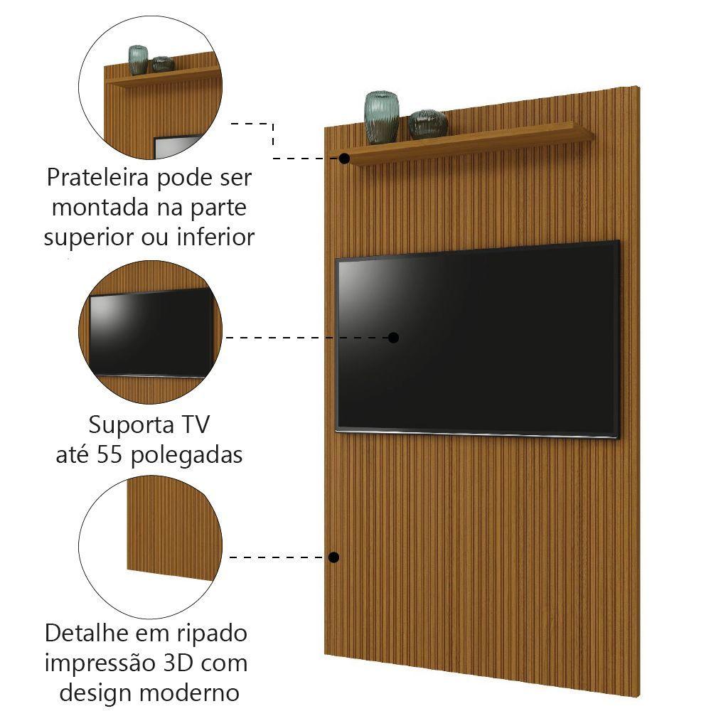 Painel Para Tv Até 55 Polegadas Ripado 3d Egeo Com Prateleira 1,35m Cedro