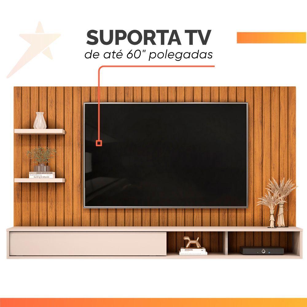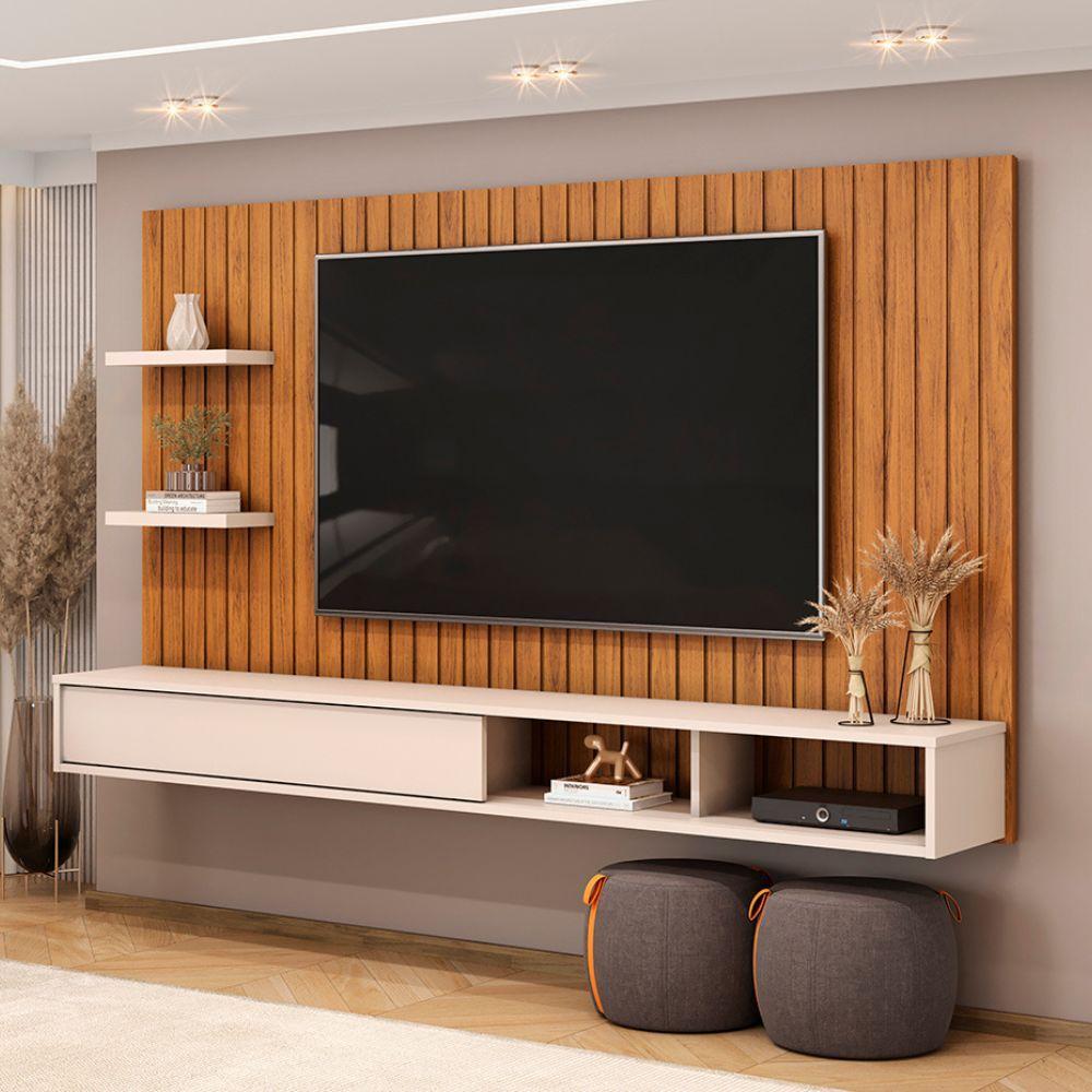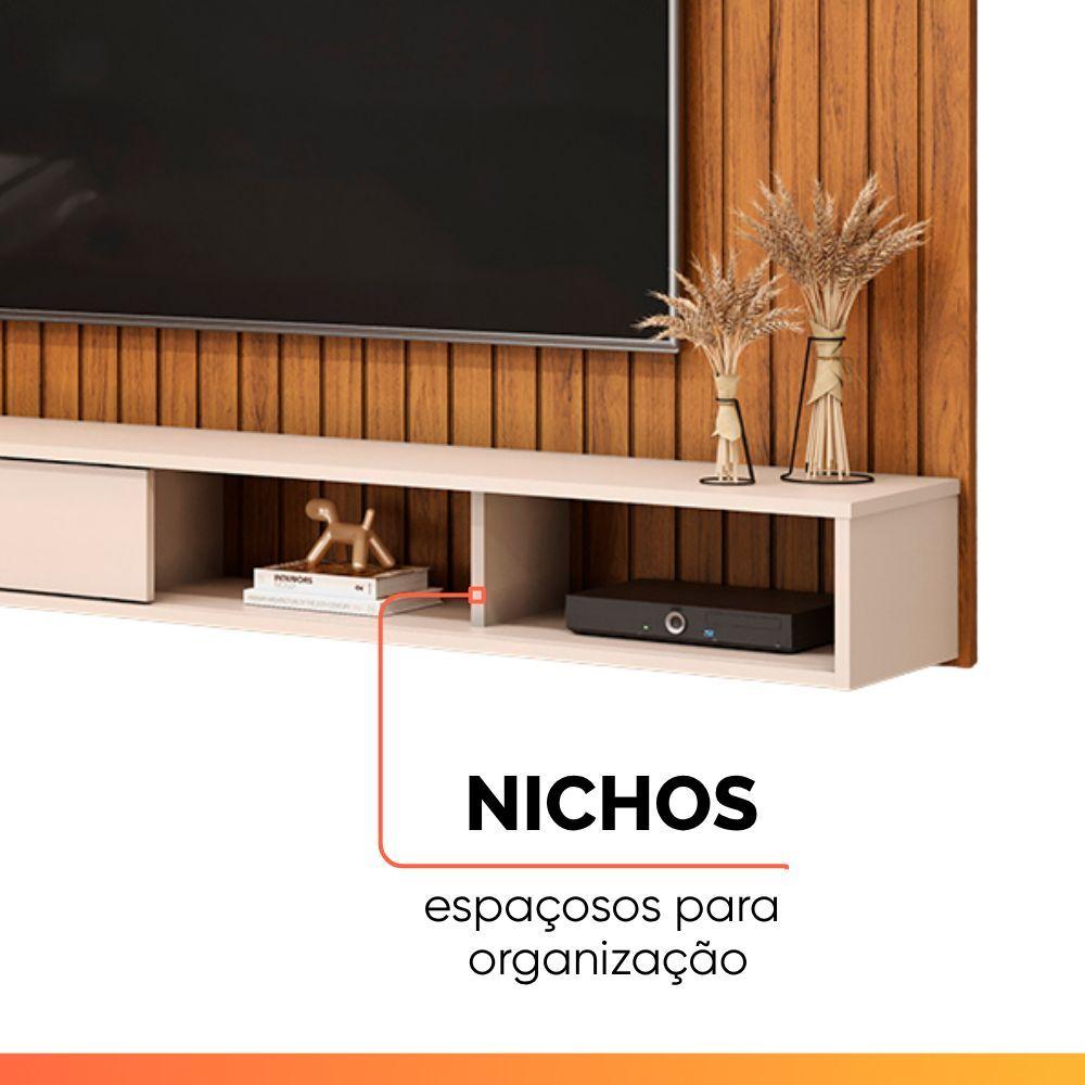 Painel Para Tv Até 60 Polegadas Frisado Com Nichos Icaro Madeirado/off White Madeirado/off White