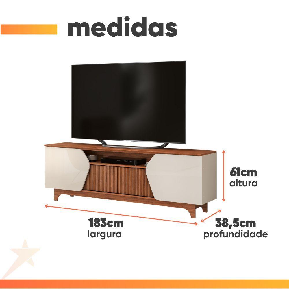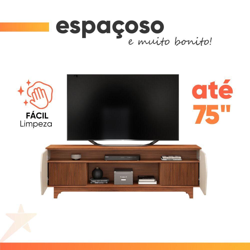 Rack Bancada Para Tv Até 75 Polegadas 1,83m 4 Portas Frisado Heloisa Off White/madeirado Off White / Madeirado
