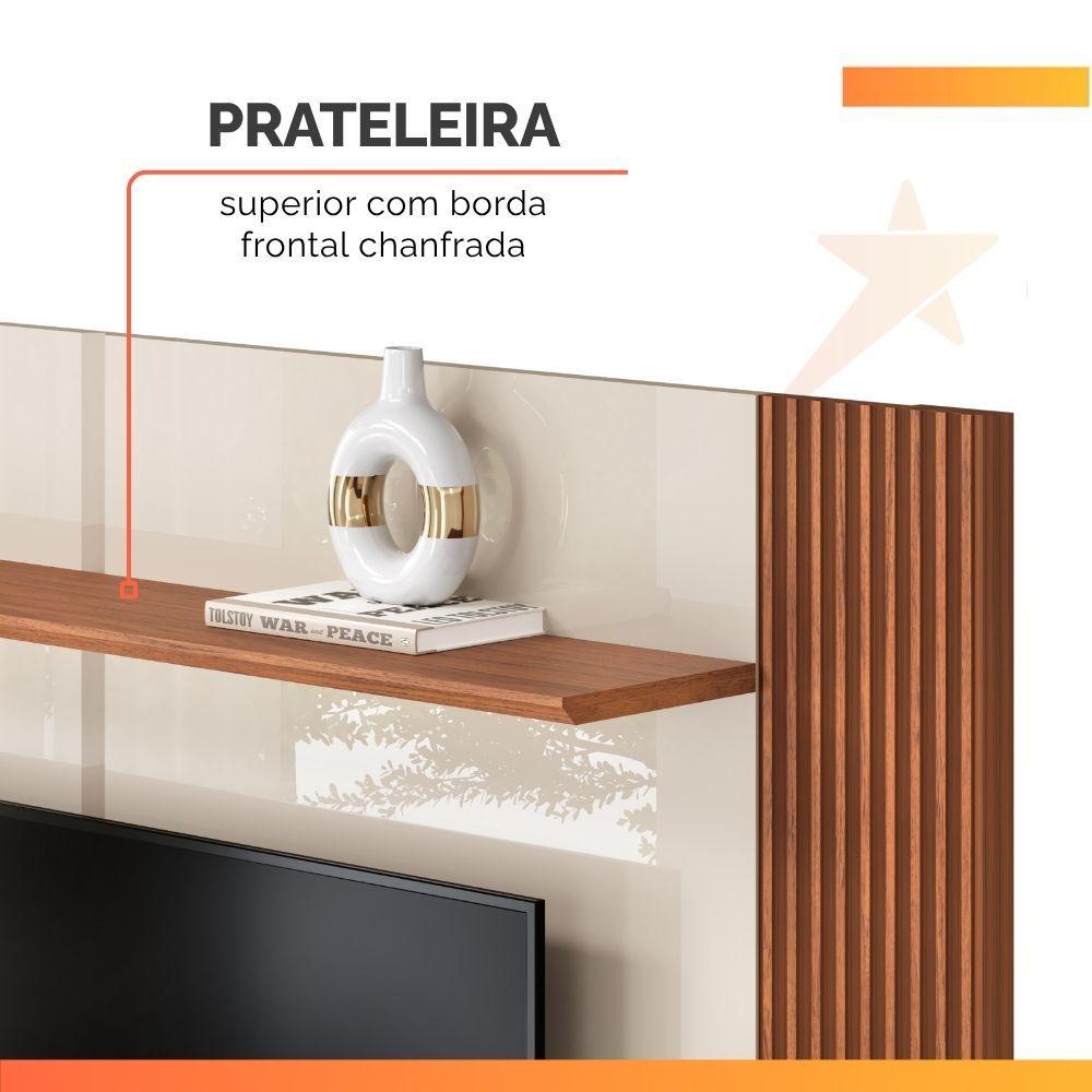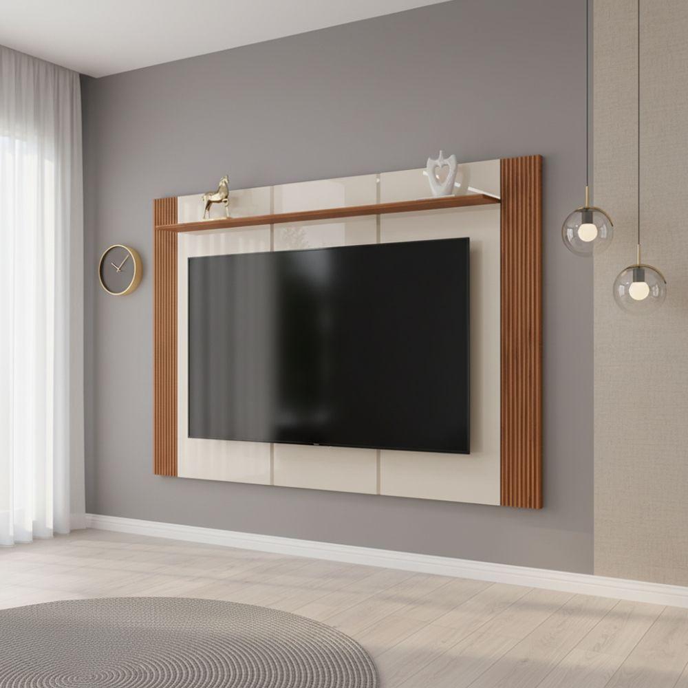 Painel Para Tv Até 75 Polegadas 1,82m Detalhe Frisado Com Prateleira Heloisa Off White/madeirado Off White / Madeirado