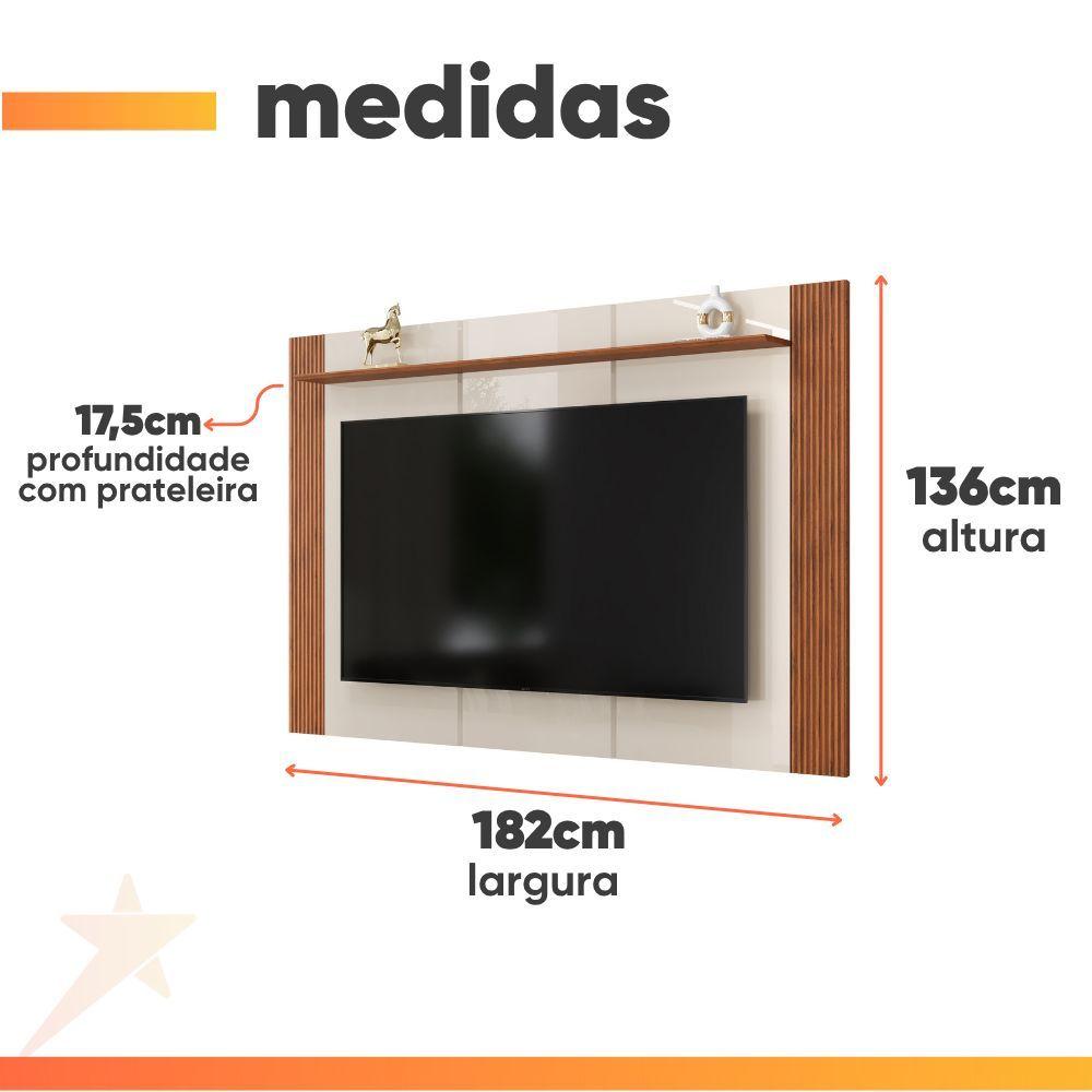 Painel Para Até 75 Polegadas 1,82m Detalhe Frisado Com Prateleira Heloisa Off White/madeirado Off White / MadeiradoO Painel Heloisa é a escolha ideal para quem busca aliar elegância e praticidade na decoração da sala de estar. Sua pintura UV de alta qualidade feita com 8 camadas que garantem, qualidade, durabilidade e resistência no acabamento, valorizando ainda mais o móvel. Seu detalhe frisado autêntico nas laterais adiciona um toque de sofisticação e personalidade ao design, tornando-o um verdadeiro destaque. A prateleira superior extensa é perfeita para acomodar objetos decorativos ou itens de uso diário, otimizando o espaço com muito charme. Projetado para oferecer praticidade sem abrir mão do bom gosto, o Painel Heloisa suporta 's de até 75 polegadas. Transforme sua sala com um painel que une beleza, funcionalidade e qualidade em cada detalhe.MEDIDAS PAINEL:A = 136 cmL = 182 cmP = 17,5 cmMEDIDAS PRATELEIRA:L = 136 cmP = 14,5 cmPRATELEIRA SUPORTA ATÉ: 5 kgPESO SUPORTADO: 40 kgPESO: 29,70 kgIDEAL PARA DE ATÉ: 75 PolegadasMODELO: Painel Para Até 75 Polegadas 1,82m Detalhe Frisado Com Prateleira HeloisaMARCA: DJ MóveisCOR: Off White/MadeiradoPINTURA: UV de alta qualidade, 8 camadasACABAMENTO: MelaminaMATERIAL: MDP/MDFESPESSURA DO MATERIAL DA ESTRUTURA: 12 mm e 15 mmPATELEIRA: 1 extensaESPAÇO PARA PASSAR FIOS: SimDIFERENCIAL: Acabamento pintura UV 8 camadas, alta qualidade / Detalhe frisado autêntico / Prateleira extensa para objetos decorativos ou itens de uso diário / Para ’s até 75 Polegadas.INSTRUÇÕES E CUIDADOS: Para maior durabilidade, recomendável que a limpeza dos móveis seja feita com pano limpo e seco. Não usar produtos químicos ou abrasivos.GARANTIA: 3 meses pelo fabricante.Importante sobre a : A é realizada até a portaria ou porta de entrada do indicado, desde que o acesso seja permitido. Para locais com portaria, a será feita no piso térreo. Não realizamos montagem, desmontagem, por escadas ou içamento. É responsabilidade do cliente verificar se as dimensões do produto são compatíveis com portas, elevadores e corredores. Evite imprevistos: confira todos os detalhes antes de concluir sua compra. MEDIDAS PAINEL:: A = 136 cm L = 182 cm P = 17,5 cm | MEDIDAS PRATELEIRA:: L = 136 cm P = 14,5 cm | PRATELEIRA SUPORTA ATÉ:: 5 kg | PESO SUPORTADO:: 40 kg | PESO:: 29,70 kg | IDEAL PARA DE ATÉ:: 75 Polegadas | MODELO:: Painel Para Até 75 Polegadas 1,82m Detalhe Frisado Com Prateleira Heloisa | MARCA:: DJ Móveis | COR:: Off White/Madeirado | PINTURA:: UV de alta qualidade, 8 camadas | ACABAMENTO:: Melamina | MATERIAL:: MDP/MDF | ESPESSURA DO MATERIAL DA ESTRUTURA:: 12 mm e 15 mm | PATELEIRA:: 1 extensa | ESPAÇO PARA PASSAR FIOS:: Sim | DIFERENCIAL:: Acabamento pintura UV 8 camadas, alta qualidade / Detalhe frisado autêntico / Prateleira extensa para objetos decorativos ou itens de uso diário / Para ’s até 75 Polegadas. | INSTRUÇÕES E CUIDADOS:: Para maior durabilidade, recomendável que a limpeza dos móveis seja feita com pano limpo e seco. Não usar produtos químicos ou abrasivos. | GARANTIA:: 3 meses pelo fabricante. | AVISO:: Importante sobre a : A é realizada até a portaria ou porta de entrada do indicado, desde que o acesso seja permitido. Para locais com portaria, a será feita no piso térreo. | Altura: 136 | Formato do móvel: Painel | Inclui manual de montagem: Sim | Largura: 182 | Profundidade: 17,5 | Quantidade de caixas de embalagem: 1 | Requer montagem: Sim | Altura da embalagem: 9 cm | Comprimento da embalagem: 140 cm | Largura da embalagem: 56 cm | Peso da embalagem: 32100 cm | Tipo da embalagem: sem embalagem adicional | Cor: Off White / Madeirado