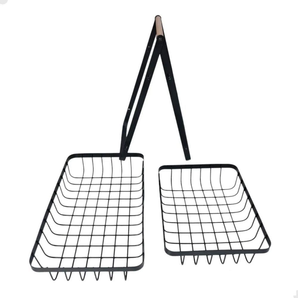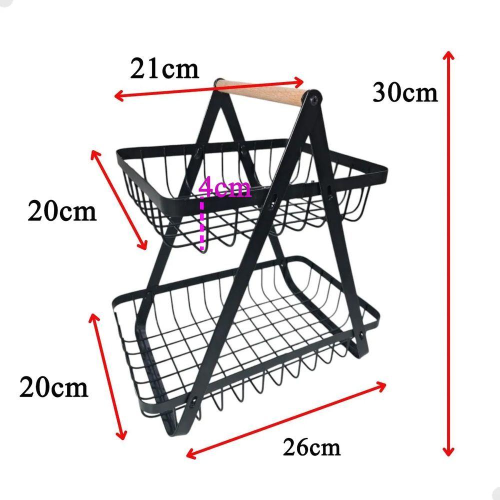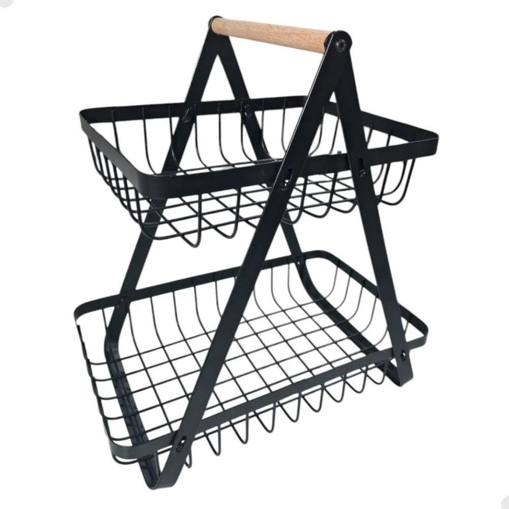 Fruteira Cesto Duplo Aramado Organizador Fruta Legume Bancada Mesa Cozinha Multiuso Armario Escritorio Estante Moderno