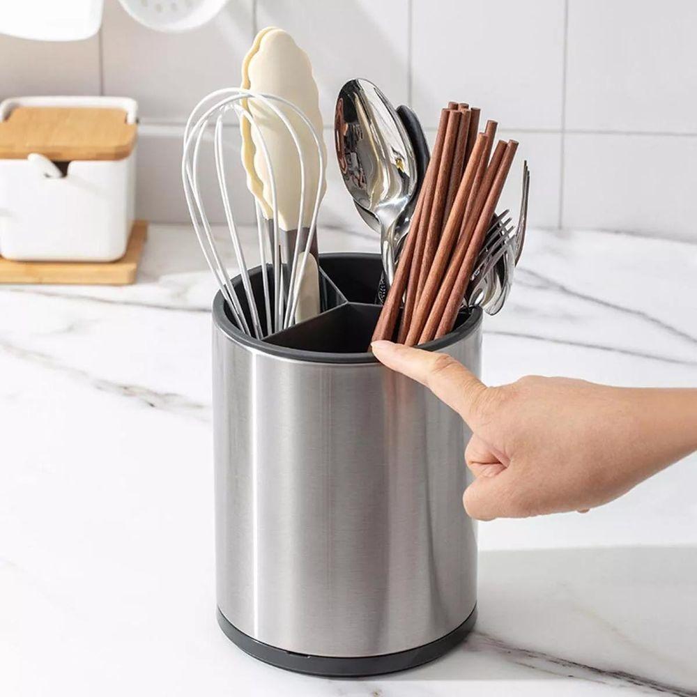Porta Talheres Utensilios Base Giratoria Inox Bancada Cozinha Suporte Pia Mesa Organizaçao Limpeza Multiuso Resistente
