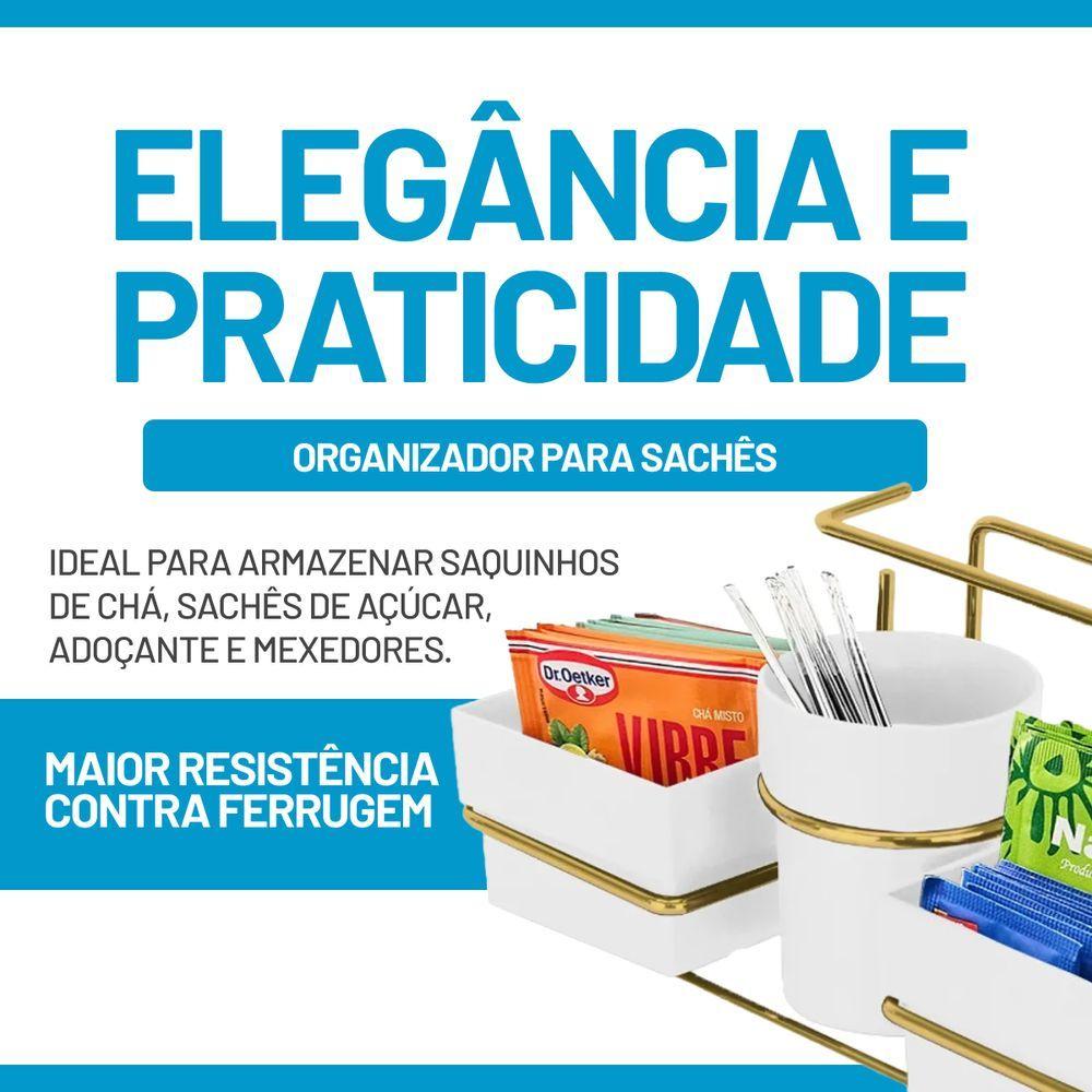 Organizador Para Sachês Mexedor E Guardanapos Dourado Branco Future 1224bcd
