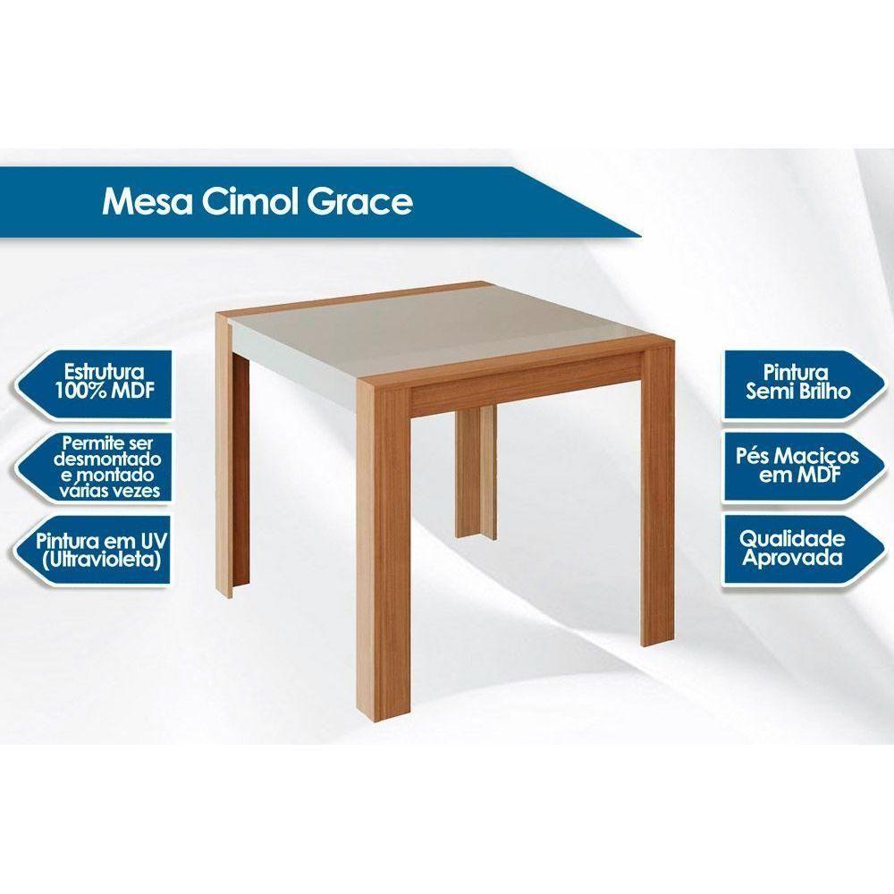 Mesa De Sala Jantar Grace + Tampo Madeirado 90x90cm Cinza/nature - Cimol