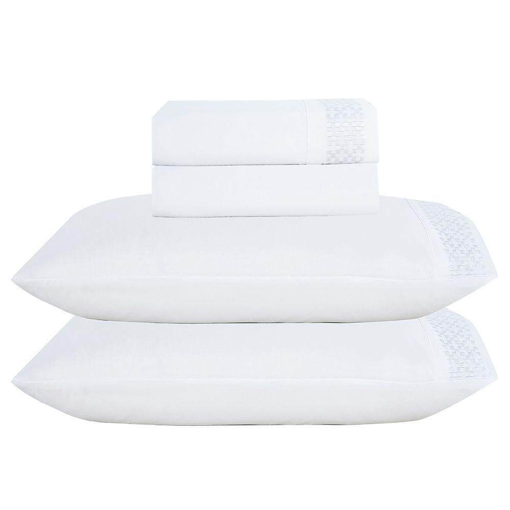 Jogo De Lençol Quadri Queen 4 Peças Micropercal 300 Fios Bordado - Branco - 100% PoliésterO Jogo de Lençol Quadri é confeccionado em micropercal 300 fios, um tecido de alta qualidade que proporciona resistência, durabilidade e um toque suave sobre a pele. Seu acabamento delicado garante conforto e sofisticação para noites de sono ainda mais agradáveis.O detalhe em barra com formato de quadrados acrescenta um design moderno e diferenciado, tornando a peça ideal para quem busca unir praticidade e estilo na decoração do quarto. Além disso, sua textura macia traz aconchego em cada uso.Com visual elegante e contemporâneo, o Jogo de Lençol Quadri é a escolha perfeita para compor uma cama charmosa e confortável, oferecendo beleza e bem-estar em todos os momentos de descanso.Contêm na embalagem 04 PEÇAS, SENDO:01 Lençol de Cima 2,50m x 2,40m01 Lencol de baixo com elástico para colchão de até 1,98m x 1,58m x 38cm altura02 Fronhas 70cm x 50cmComposição:Tecido Micropercal 300 Fios: 100% PoliésterAtenção: As cores do produto podem apresentar pequenas variações de acordo com as configurações da tela do seu dispositivo.