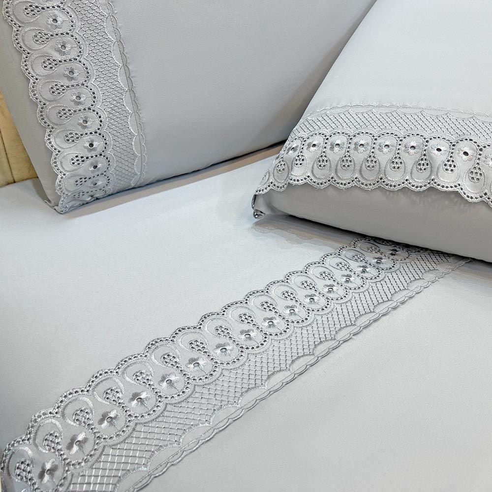 Jogo De Lençol Clara Casal 4 Peças Micropercal 300 Fios Bordado Inglês - Cinza - 100% Poliéster
