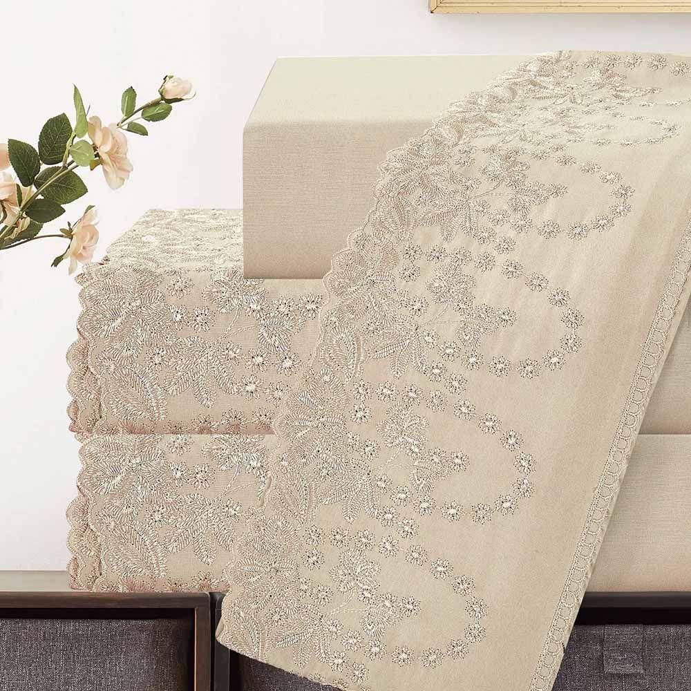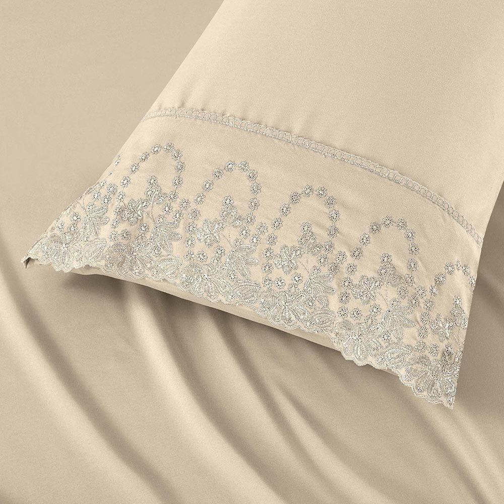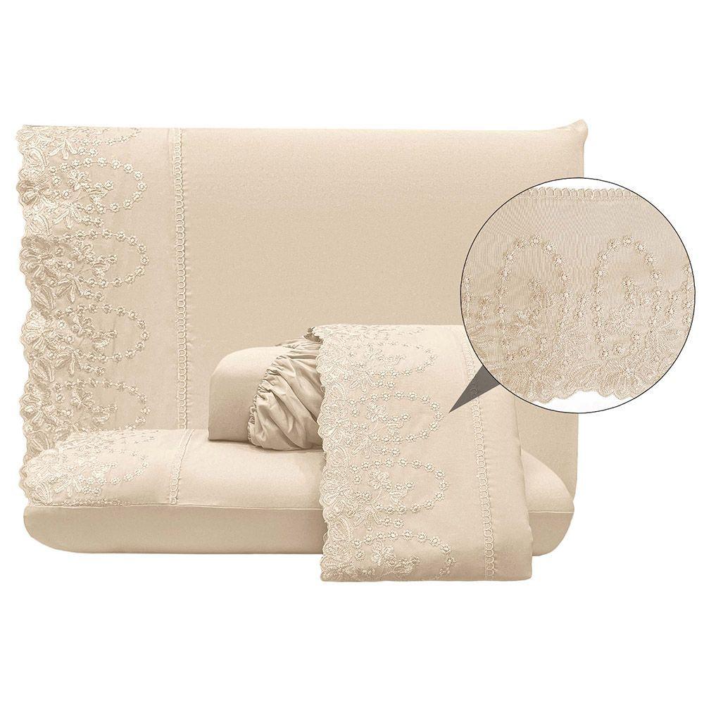 Jogo De Lençol Lummi King 4 Peças Percal 300 Fios Bordado Inglês Macio - Pérola - 100% Poliéster