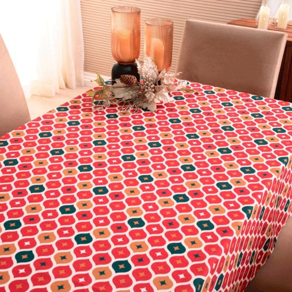 Toalha De Mesa Natal Estampa Digital 2,00m X 1,40m Para 6 Lugares Tecido Oxford - Modelo 6 - 100% Poliéster