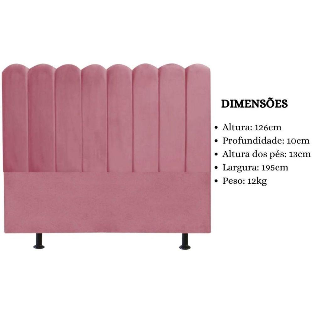 Cabeceira Estofada Cama Box King 195 Cm Maitê Suede Cor:rosaTransforme o visual do seu quarto com a Cabeceira Estofada Maitê, projetada para oferecer conforto e sofisticação. Seu design único e detalhes cuidadosamente pensados proporcionam um ambiente mais convidativo e aconchegante.Características:Material de Qualidade: Fabricada em madeira eucalipto de alta qualidade, garantindo durabilidade e resistência.Revestimento Sofisticado: Revestida em suede, a cabeceira adiciona um toque de elegância ao seu quarto.Apoio Confortável: Ideal não apenas para acompanhar sua cama, mas também para proporcionar um apoio aconchegante para as costas quando estiver sentado.Fácil Montagem: Produto vai montado, necessitando apenas rosquear os pés (2) para a instalação completa.Dimensões:Altura: 126 cmLargura: 195 cmProfundidade: 10 cmAltura dos Pés: 13 cmPeso: 12 KgEspecificações do Produto:Estrutura: Madeira EucaliptoTecido: SuedeMaterial dos Pés: PlásticoMontagem: Produto vai montado, pés podem ser rosqueados facilmenteInstruções de Limpeza: Utilizar um pano limpo e levemente úmidoObservações Relevantes:Produto destinado para uso residencial em ambiente interno, evitando exposição direta ao sol, calor e umidades excessivas.Variação de tonalidade entre a imagem e o produto real pode ocorrer devido ao tratamento de imagens e calibração de cores do monitor.Para futuras compras, variações na tonalidade podem ocorrer devido a lotes diferentes de fabricação do tecido.Imagens meramente ilustrativas; não acompanham objetos de decoração e eletrodomésticos.Confira as dimensões do produto no momento da compra para garantir que passe normalmente por escadas, elevadores, portas e corredores.Garanta já a sua Cabeceira Estofada Maitê e transforme seu espaço em um ambiente ainda mais acolhedor!Decoração de QuartoConforto ResidencialEstilo ModernoCama Box King SizeMobiliário AconcheganteDesign ExclusivoSofisticação no QuartoElegância ResidencialMóvel de Alta DurabilidadeAcessório de Quarto