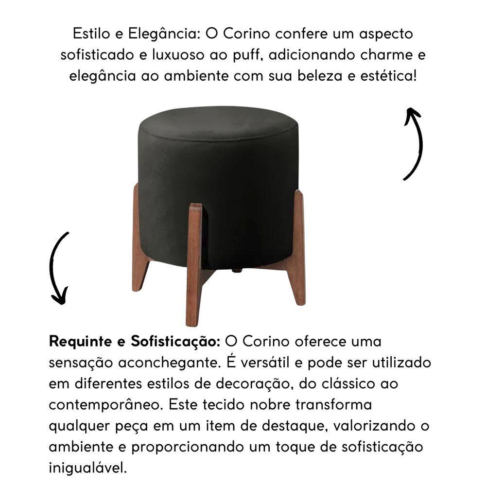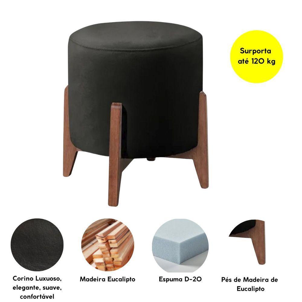Puff Estofado Decorativo Redondo Eloá Corino preto