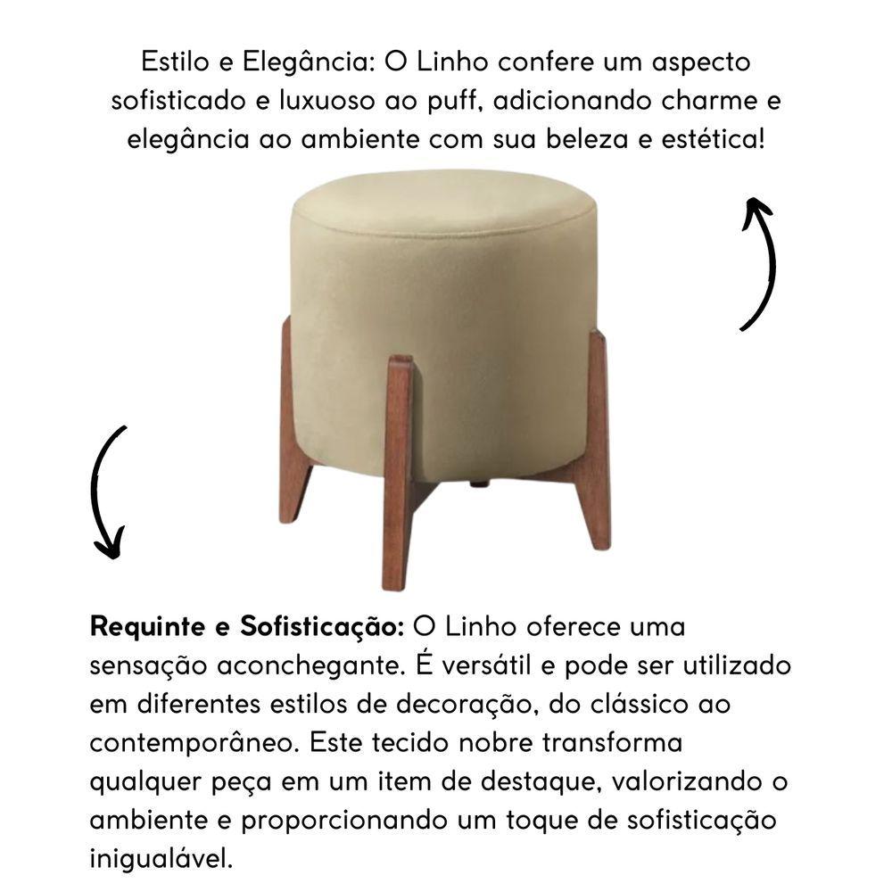 Puff Estofado Decorativo Redondo Eloá Linho Bege