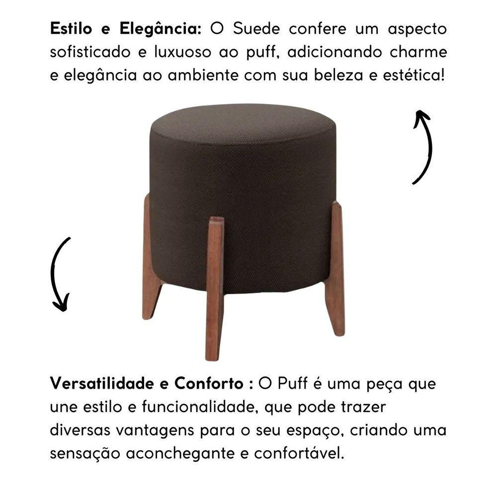 Kit 2 Puff Decorativo Redondo Luxo Roma Suede marrom