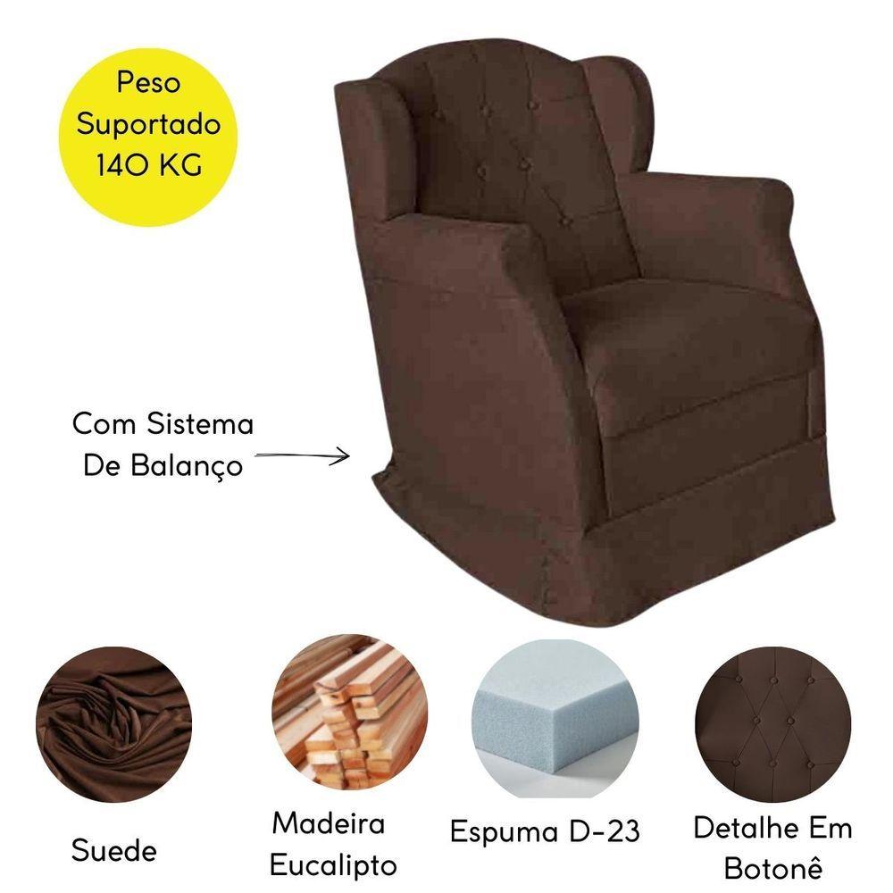 Poltrona Amamentação Cadeira Reforçada Balanço Lile Suede marrom